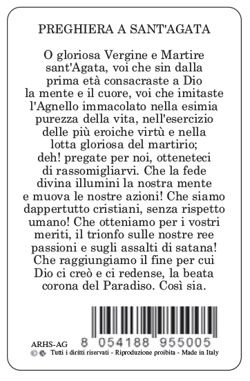 Card Sant Agata della guarigione in PVC - 5,5 x 8,5 cm - italiano