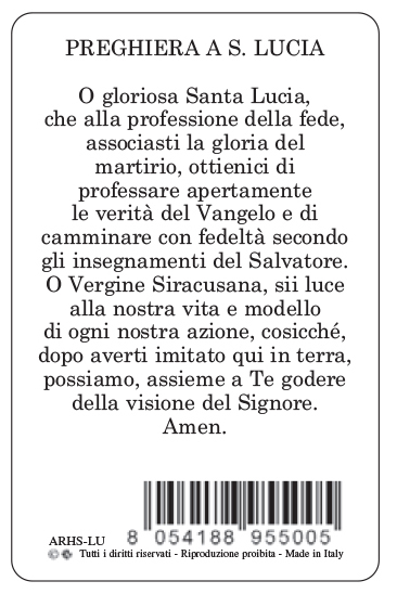Card Santa Lucia della guarigione in PVC - 5,5 x 8,5 cm - italiano