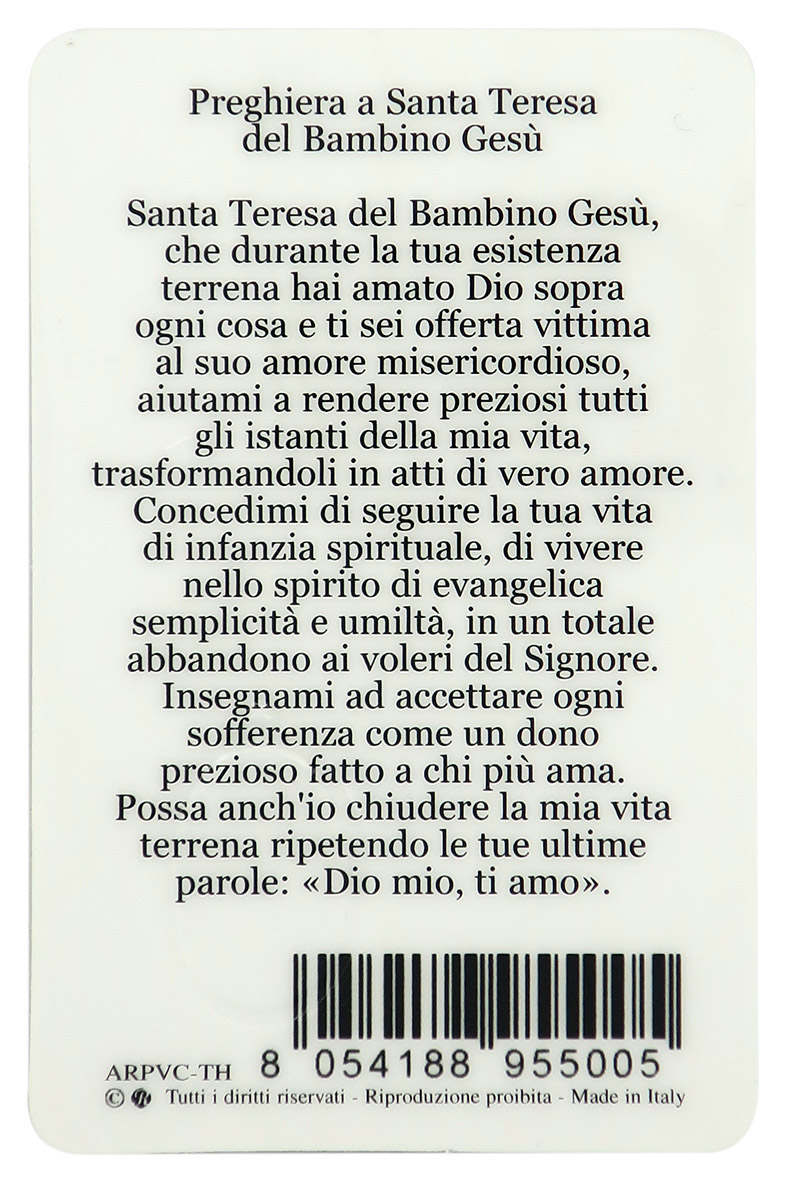 Card Santa Teresa di Lisieux in PVC - 5,5 x 8,5 cm - italiano