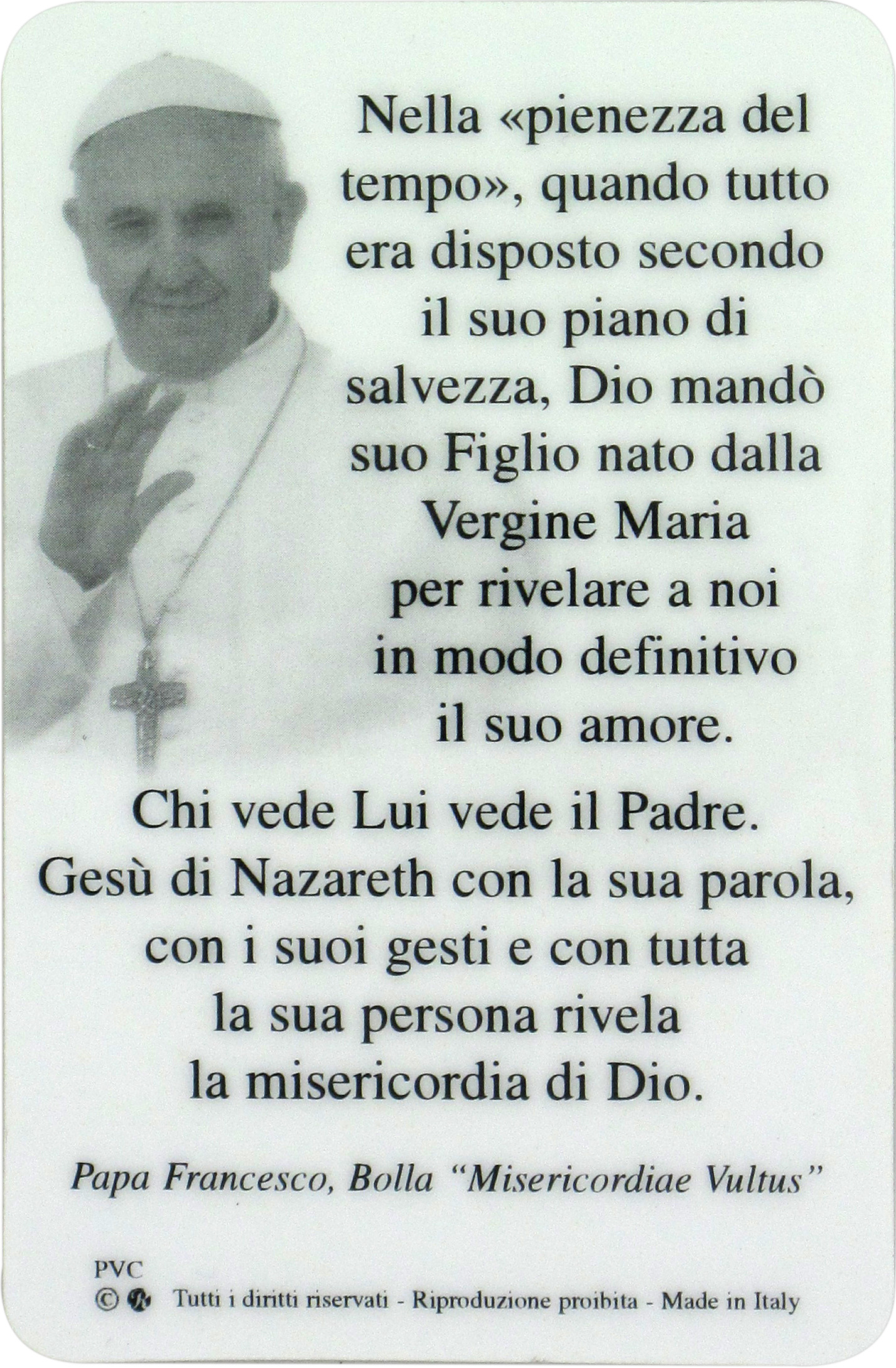 Questa immagine plastificata rappresenta la Piazza di San Pietro. La misura di questa card è di cm 5,5 x 8,5. Lingua: italiano. Materiale: PVC. Realizzato in Italia