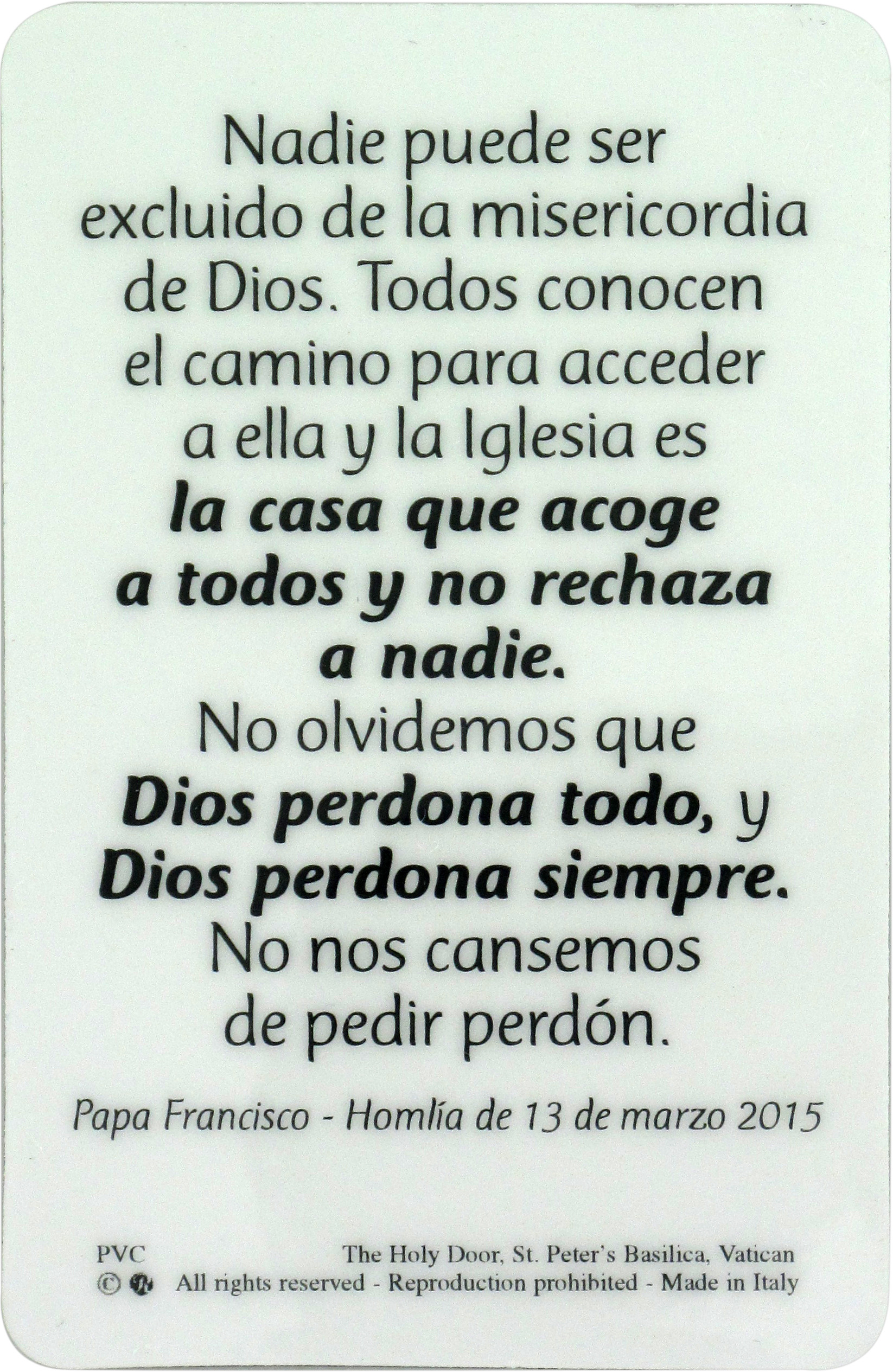 Questa immagine plastificata rappresenta la Porta Santa. La misura di questa card è di cm 5,5 x 8,5. Lingua: spagnolo. Materiale: PVC. Realizzato in Italia