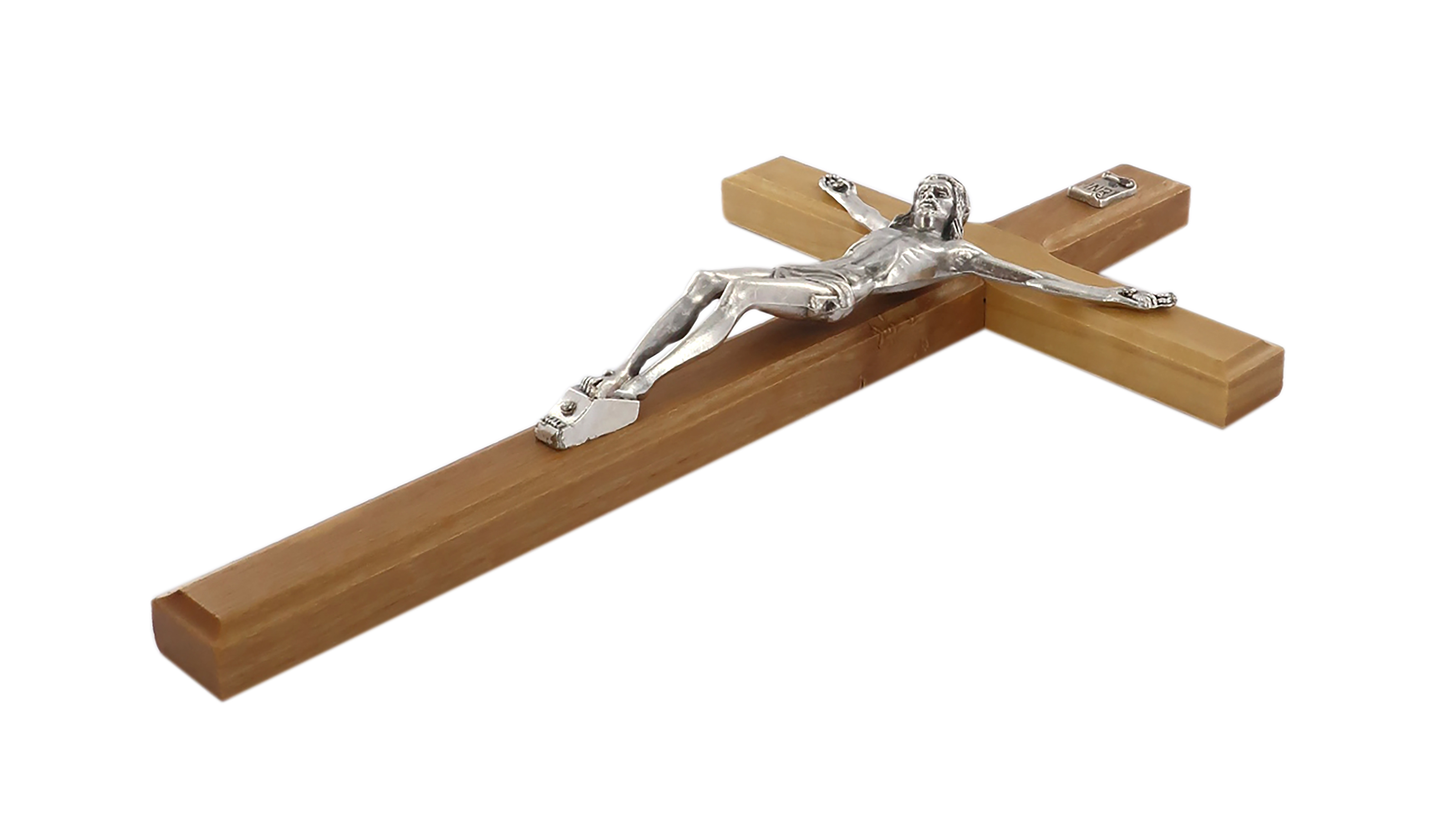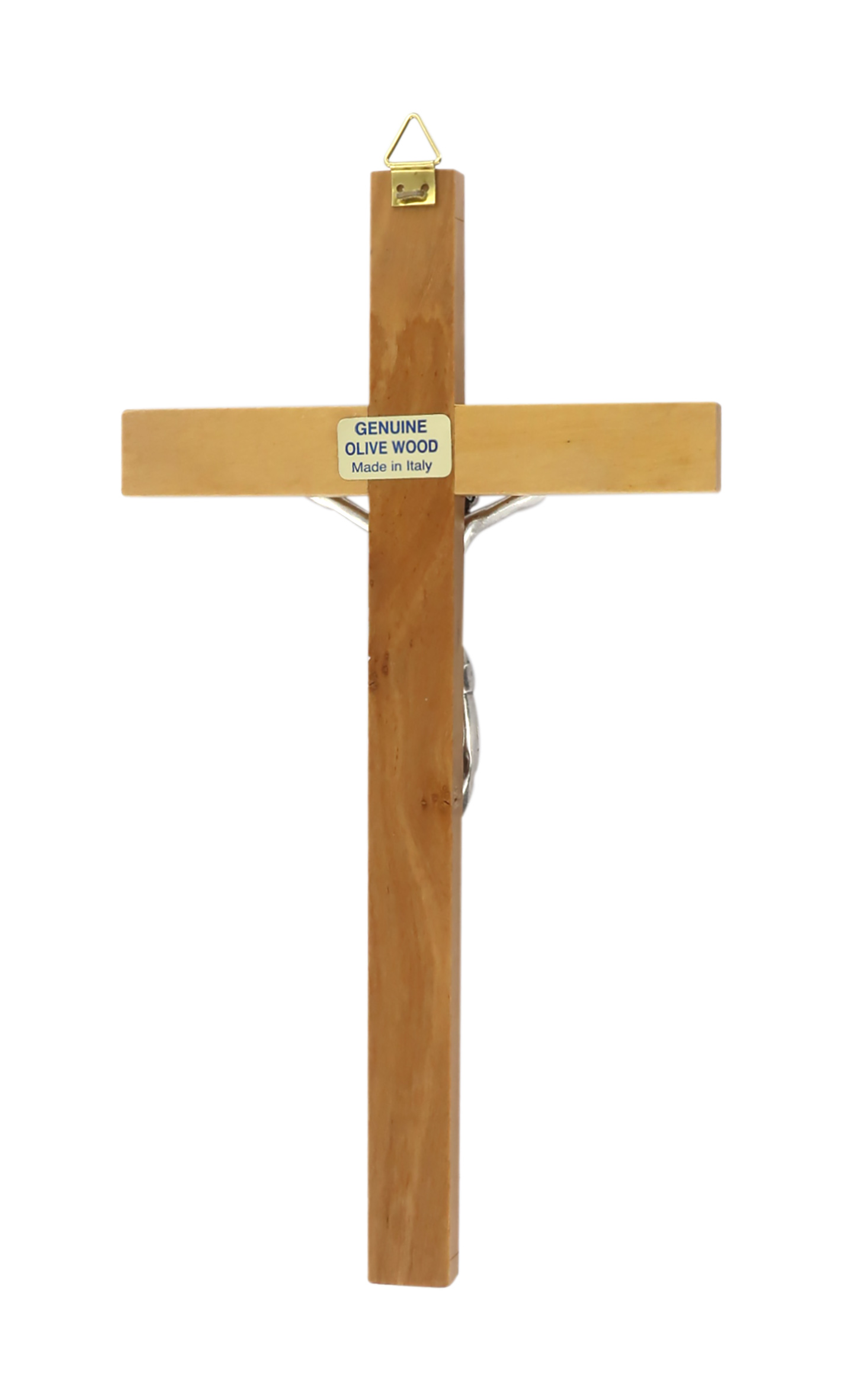Croce in legno di ulivo con Gesù Cristo in metallo ossidato. Il legno d'ulivo non è di facile lavorazione in quanto nodoso e duro, ma la fatica nel lavorarlo è ricompensata dalla bellezza delle sue venature che danno a questo legno forme singolari ed un calore unico. Gli oggetti in legno d'ulivo hanno il pregio di rimanere nel tempo, per il valore pregiato del legno, per la bellezza artistica e per il calore che suscitano nell'ammirarli. Il legno di ulivo riunisce qualità, estetica e robustezza. La particolare rifinitura di questo crocifisso il legno d'ulivo prevede che lo spigolo vivo del bordo della croce venga "tagliato" mediante un apposito processo di fresatura, che dona al crocifisso una sorta di "modanatura" e una tridimensionalità più accentuata. Realizzato in Italia. Il prodotto verrà consegnato in una scatola. Il crocifisso è dotato di un gancetto che consente di appenderlo alla parete in modo molto semplice. Il crocifisso è disponibile in altre misure: - 17 cm (codice B0C2ZWRGCD); - 30 cm (codice B0C31GH1Y5).