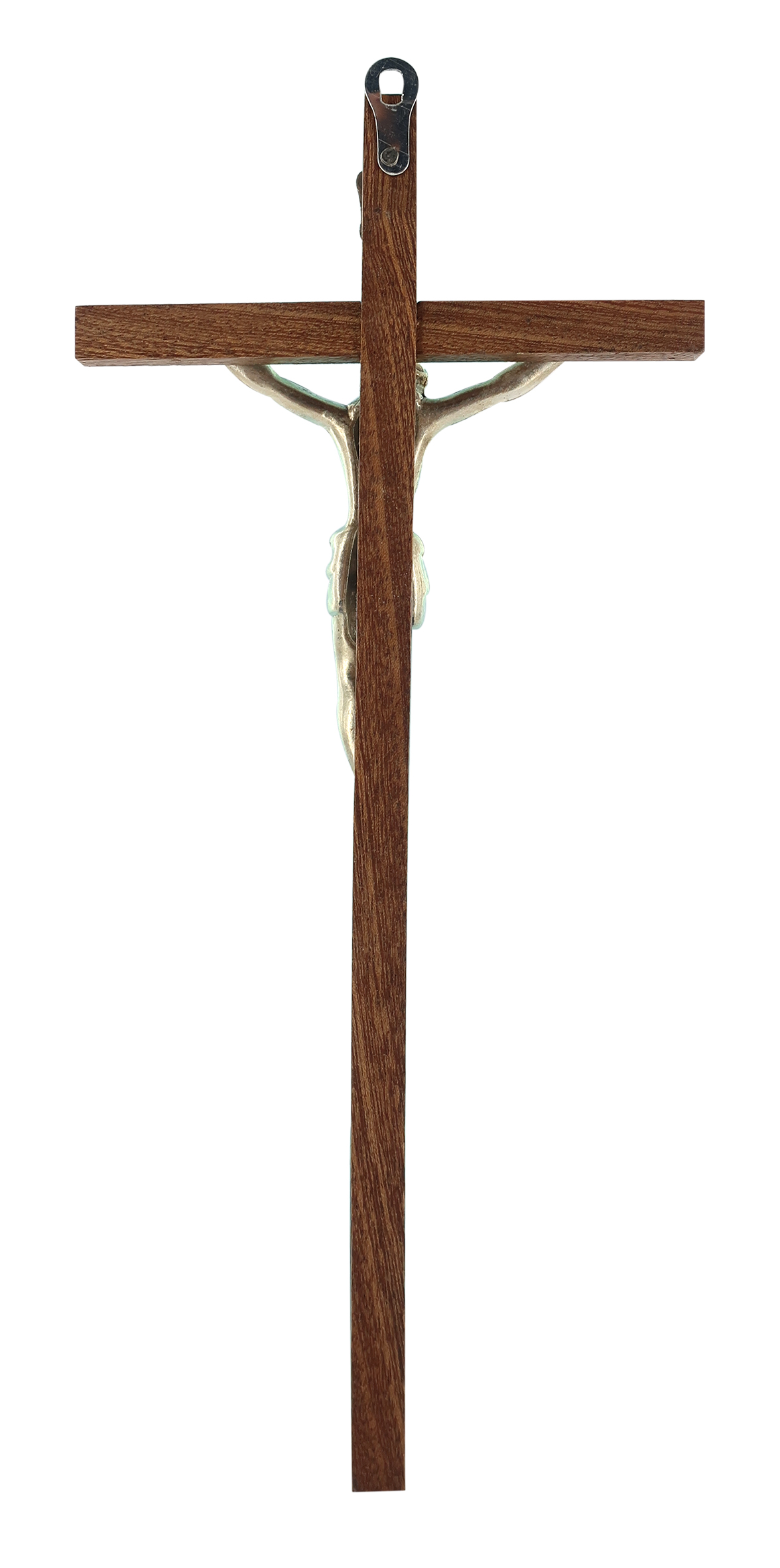 Crocifisso da parete in legno di mogano con Cristo in metallo - 20,5 cm