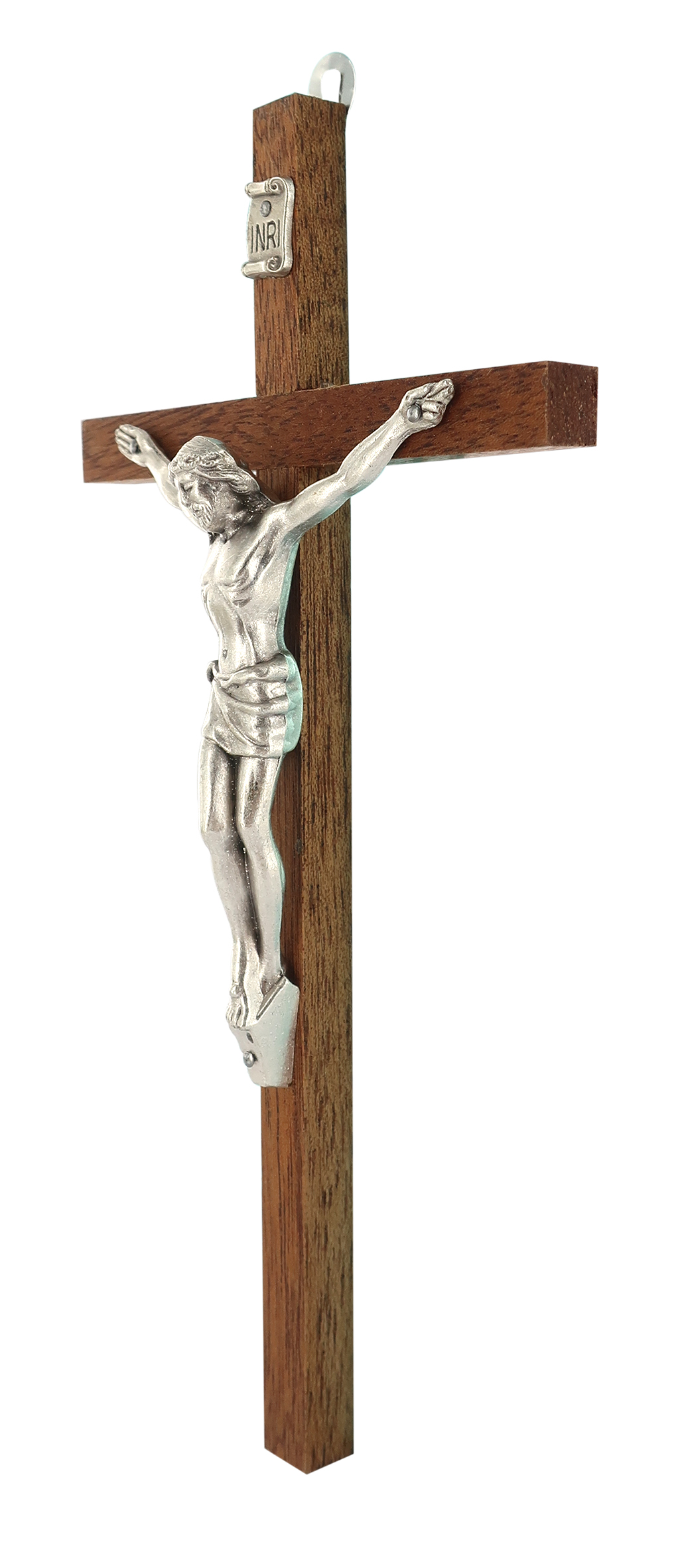 Crocifisso da Parete, Legno di Mogano, con Cristo in Metallo - 25 cm