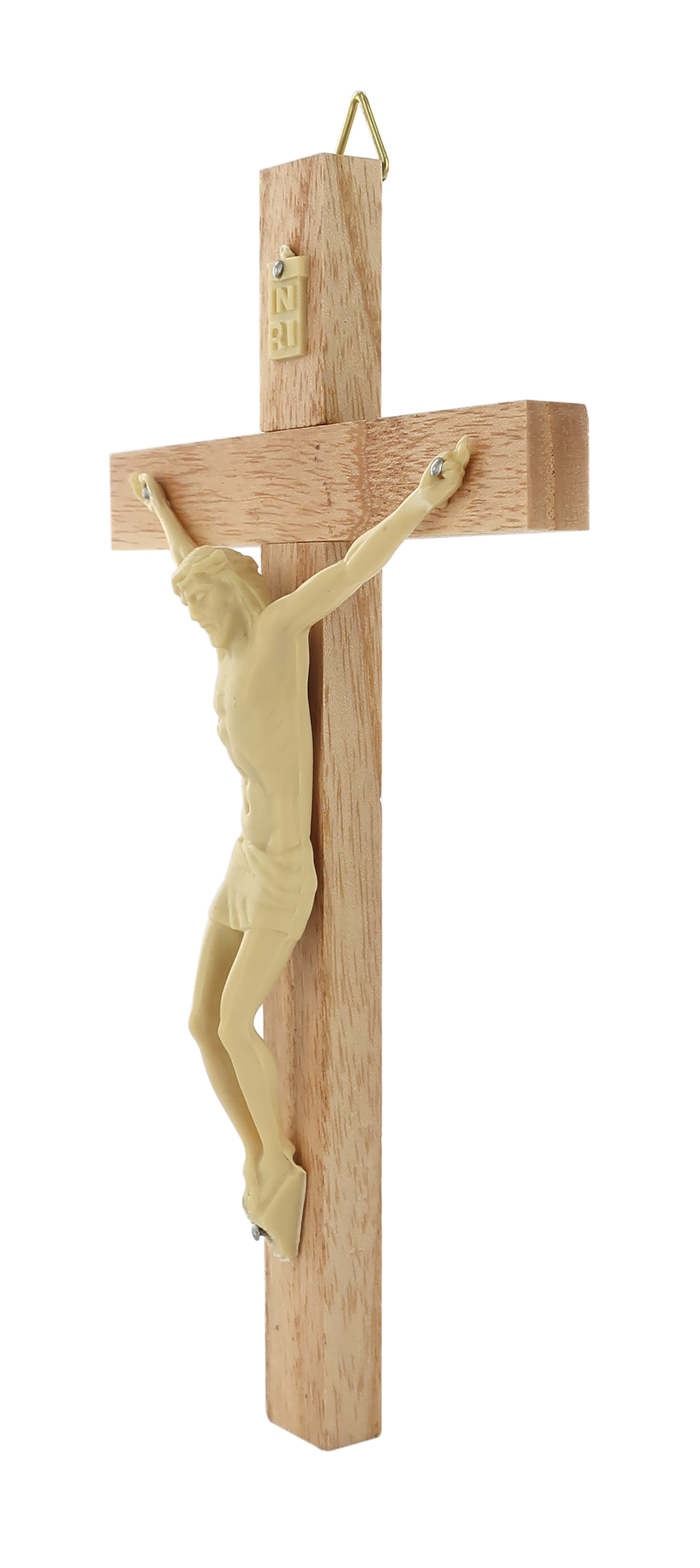 Crocifisso da Parete in Legno con Cristo in Plastica, Altezza Crocifisso 13 Cm
