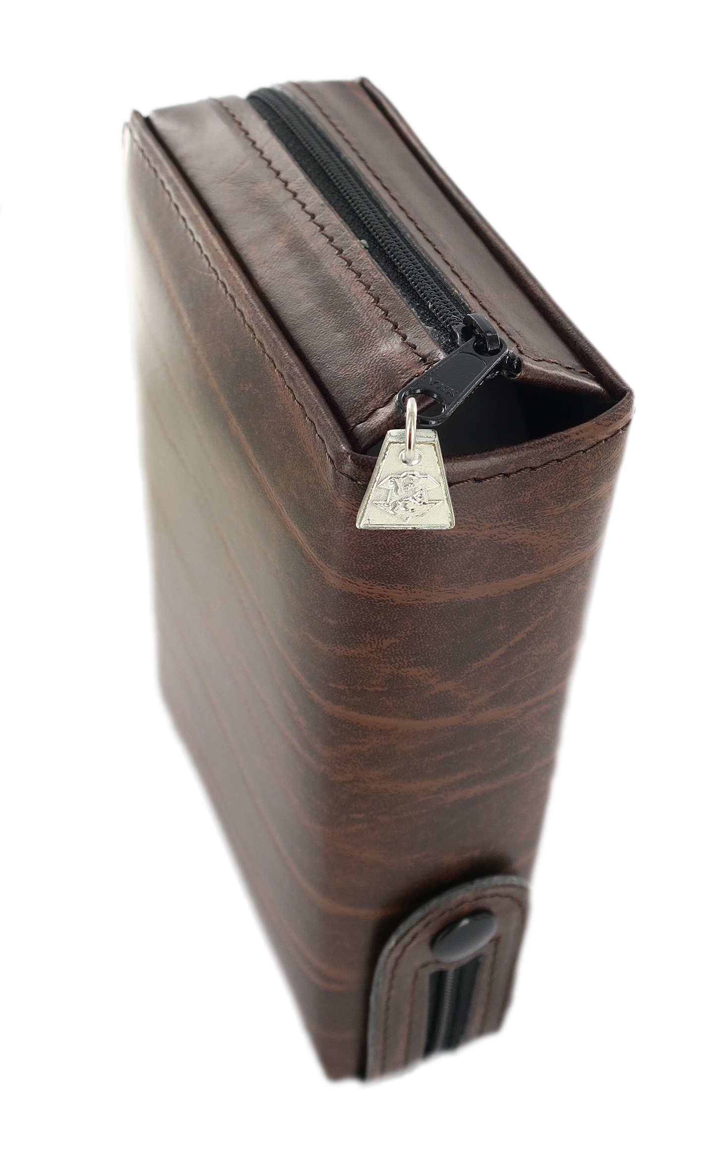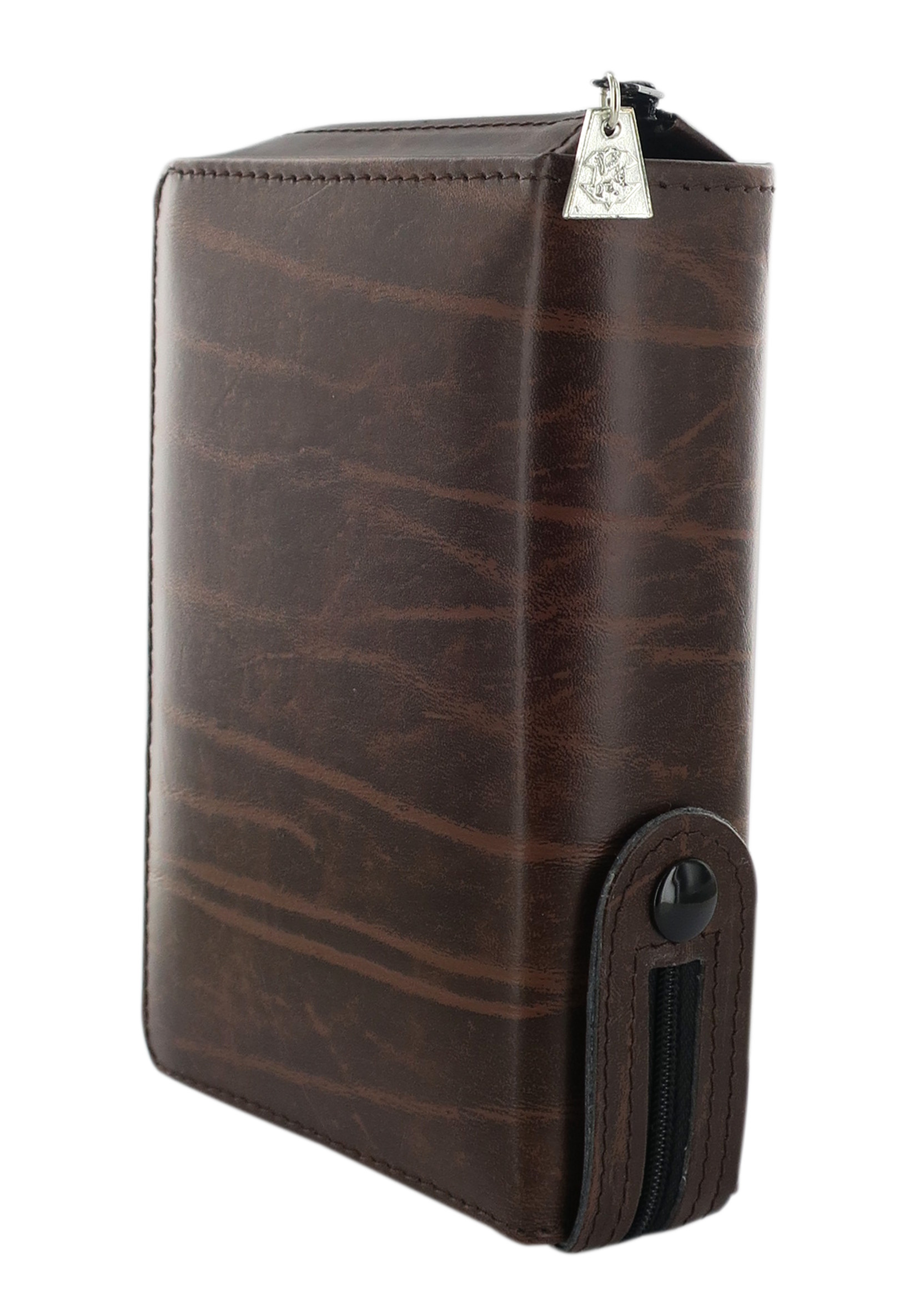 Custodia per liturgia delle Ore Edizione Vaticana (Volume Unico). Realizzata in pelle con l'interno in fodera nera, vanta una pratica chiusura a cerniera lampo.