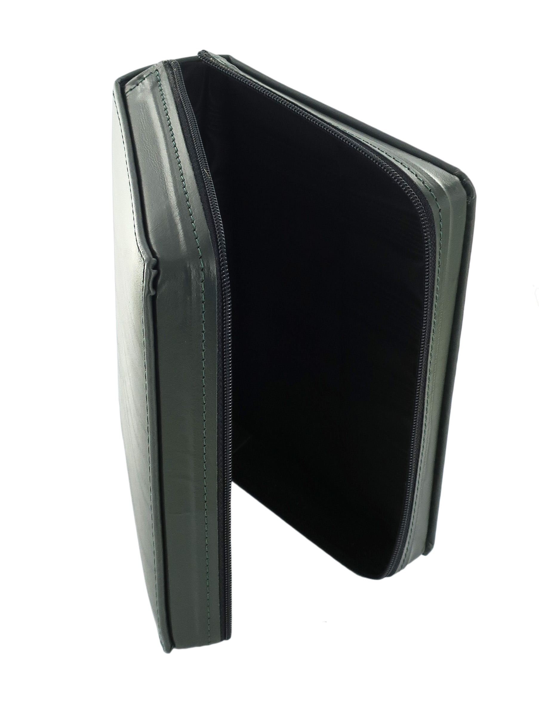 Custodia per liturgia delle Ore Edizione Vaticana (Volume Unico). Realizzata in pelle con l'interno in fodera nera, vanta una pratica chiusura a cerniera lampo.