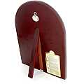 L'icona è inserita in un quadro ad arco di legno color mogano. Il quadro può essere sia appeso che appoggiato grazie al foro sul retro e ad un piedino d'appoggio presente all'interno della confezione.