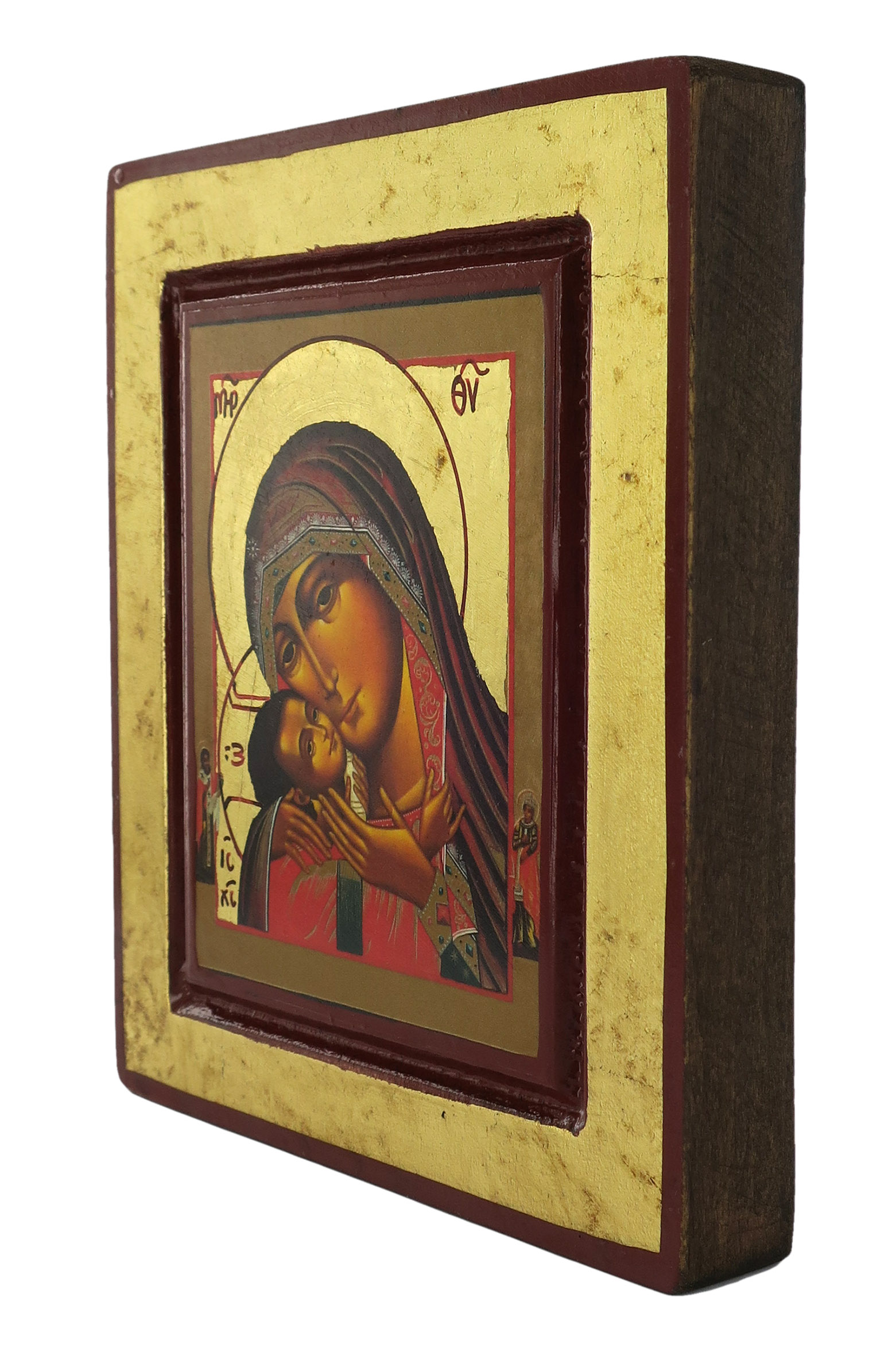 Icona Madonna di Korsun, Icona in Stile Arte Bizantina, Icona su Legno Rifinita con Aureole, Scritte e Bordure Fatte a Mano, Produzione Greca - 14 x 12,5 Cm
