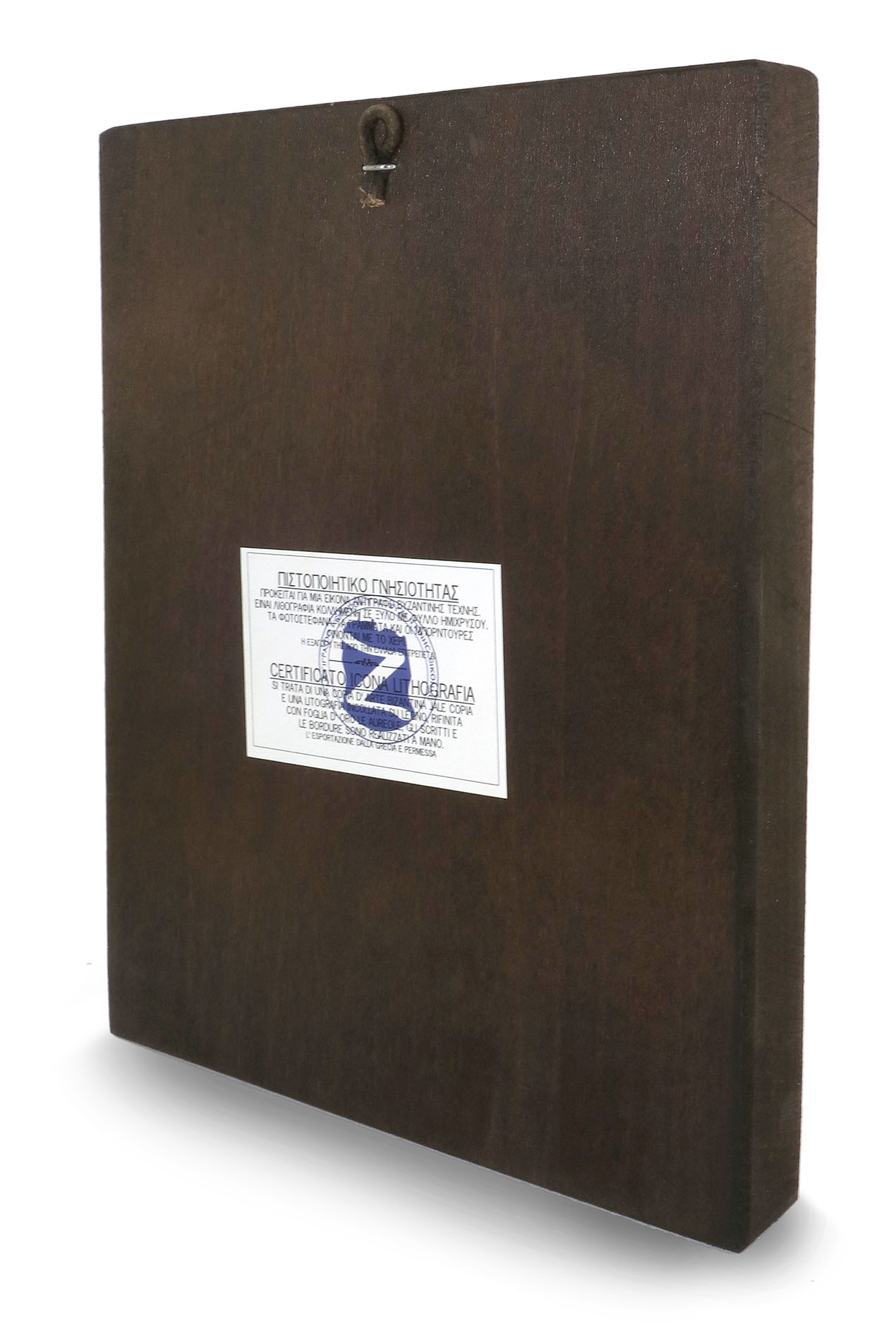 Il retro reca una certificazione che attesta le caratteristiche produttive di questa icona di St. Paddy, realizzata in Grecia.