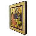 L'immagine è una fine litografia incollata su legno e rifinita con foglia d'oro, mentre le aureole, le scritte e i bordi sono realizzati a mano. Il contorno interno, incassato, divide la rappresentazione centrale dal bordo esterno, facendo sembrare quest'ultimo una cornice. Il gancio sul retro consente di appendere la grande icona al muro.