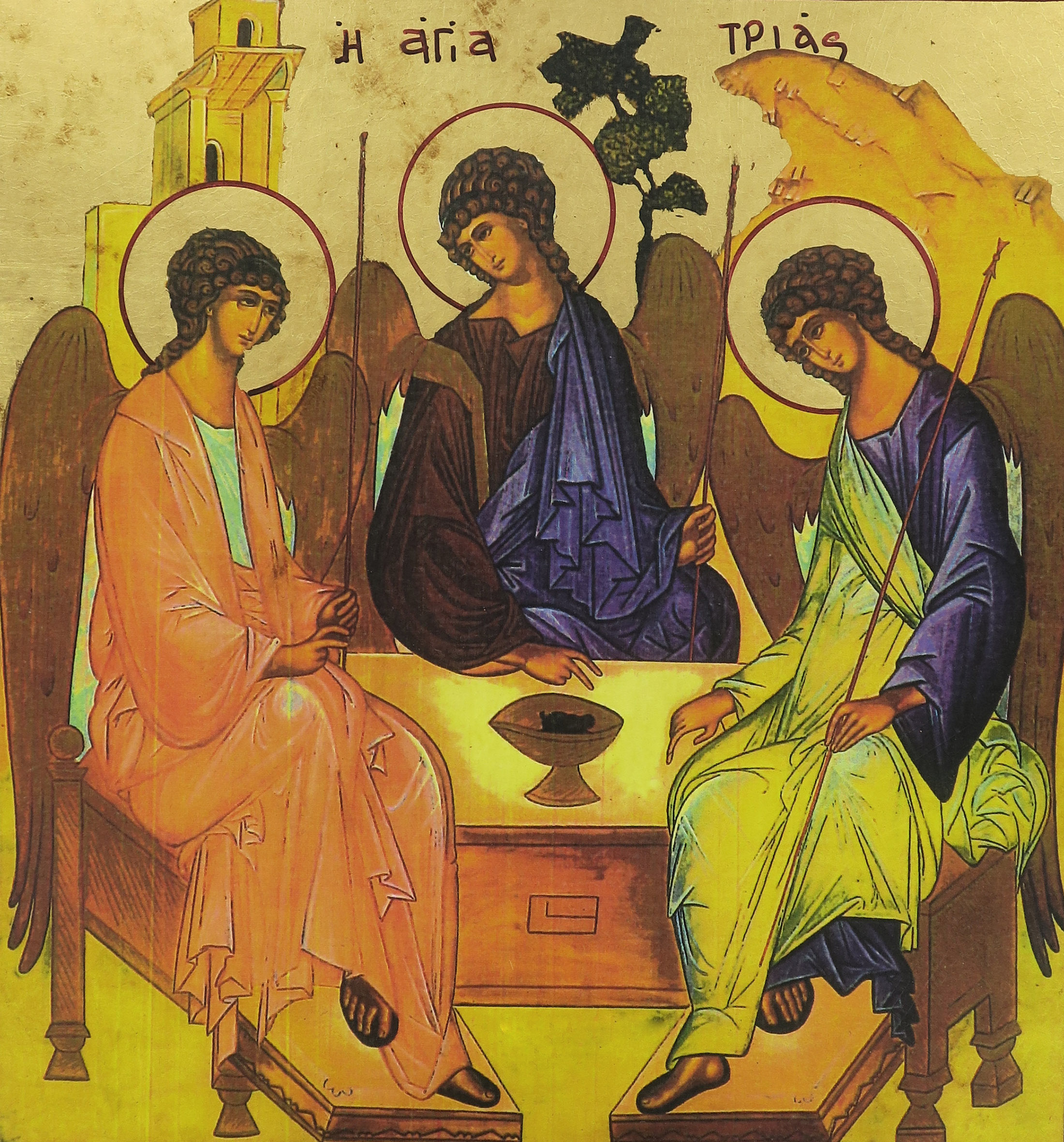 Grande icona da parete, di forma quasi quadrata, che raffigura la Trinità di Andrej Rublëv, dall'interpretazione incerta. Viene ricreata la visita di tre angeli ad Abramo, in cui gli fu fatta la promessa di una discendenza. Considerata "l'icona delle icone", è anche chiamata "Ospitalità di Abramo" ed è stata realizzata nel XV secolo. Molti studiosi interpretano le tre figure come la Trinità: a sinistra della rappresentazione ci sarebbe Dio Padre, Gesù sarebbe al centro e sulla destra viene identificato lo Spirito Santo. Nella figura è presente la coppa, metafora del sacrificio del Signore.