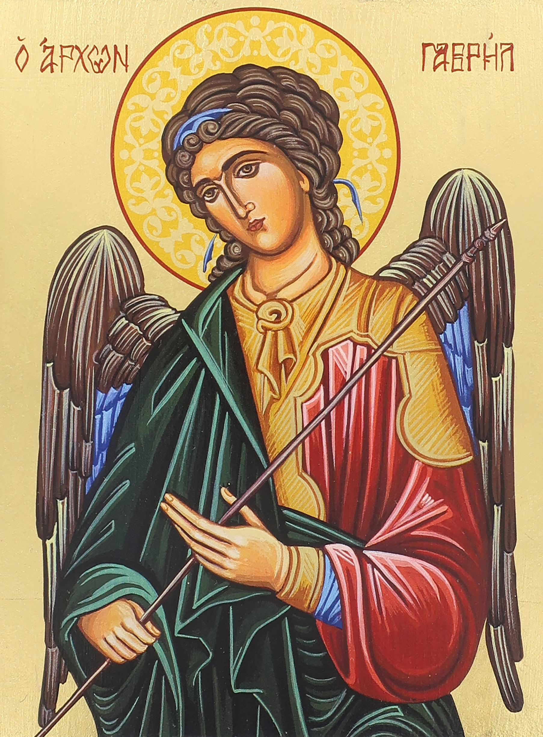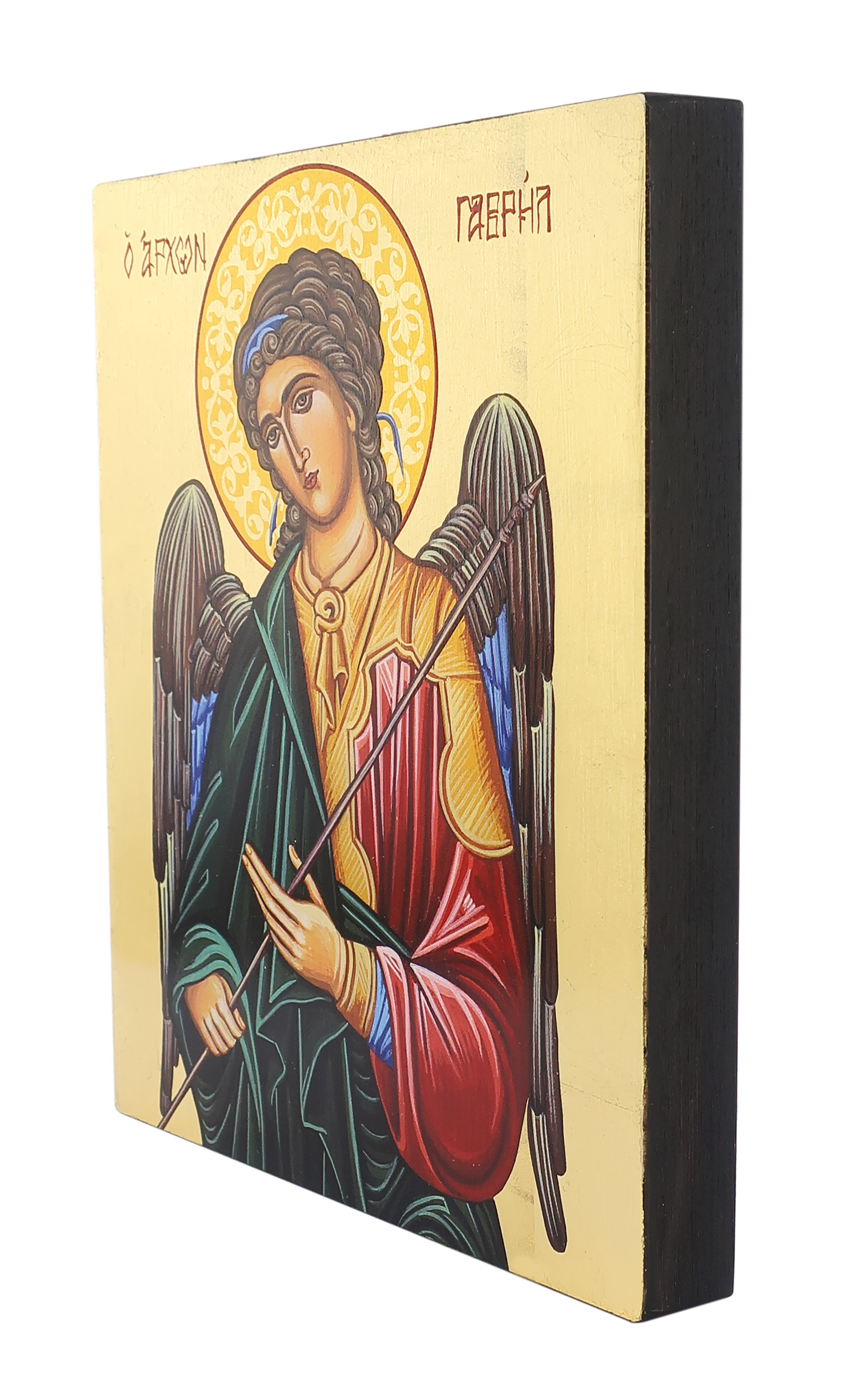 Icona raffigurante l'Arcangelo Gabriele dipinta a mano su legno con fondo oro secondo le tecniche bizantine.
