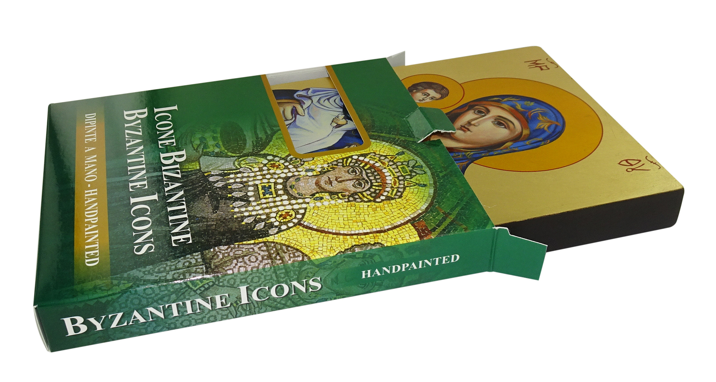 L'icona verrà consegnata con certificato di garanzia del pittore e inscatolata in una confezione regalo.