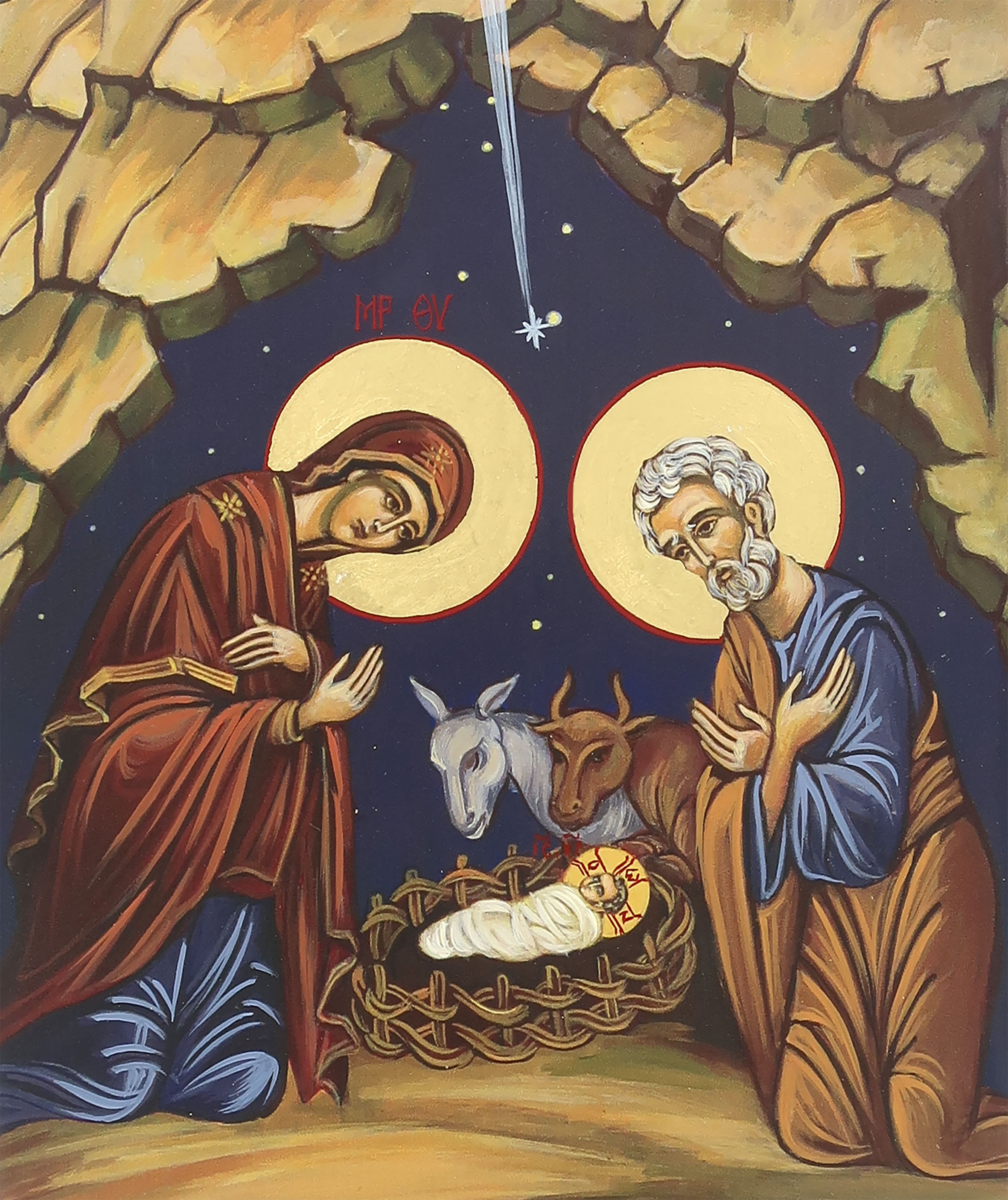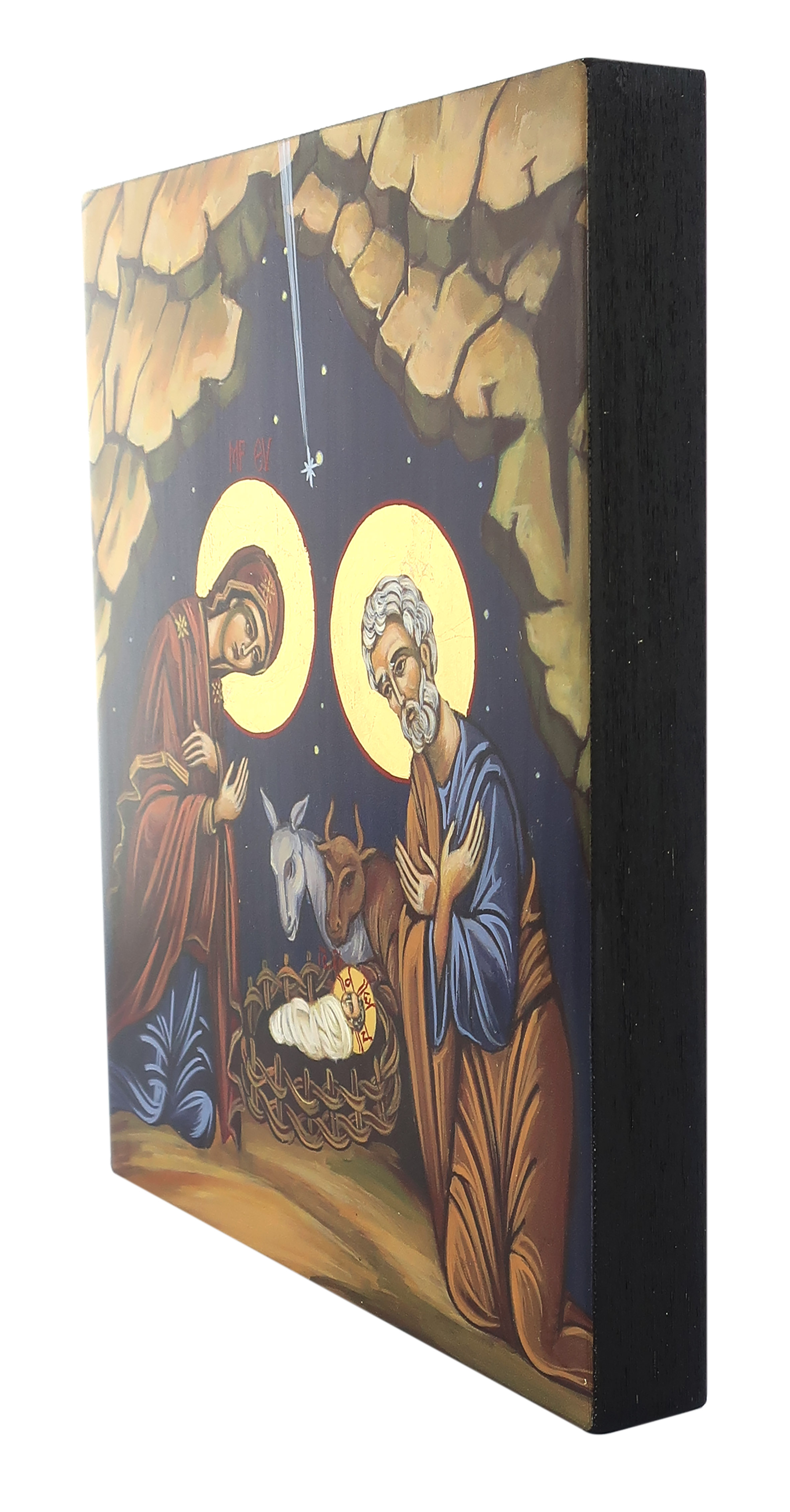 Icona Natività dipinta a mano su legno con fondo oro cm 16x19