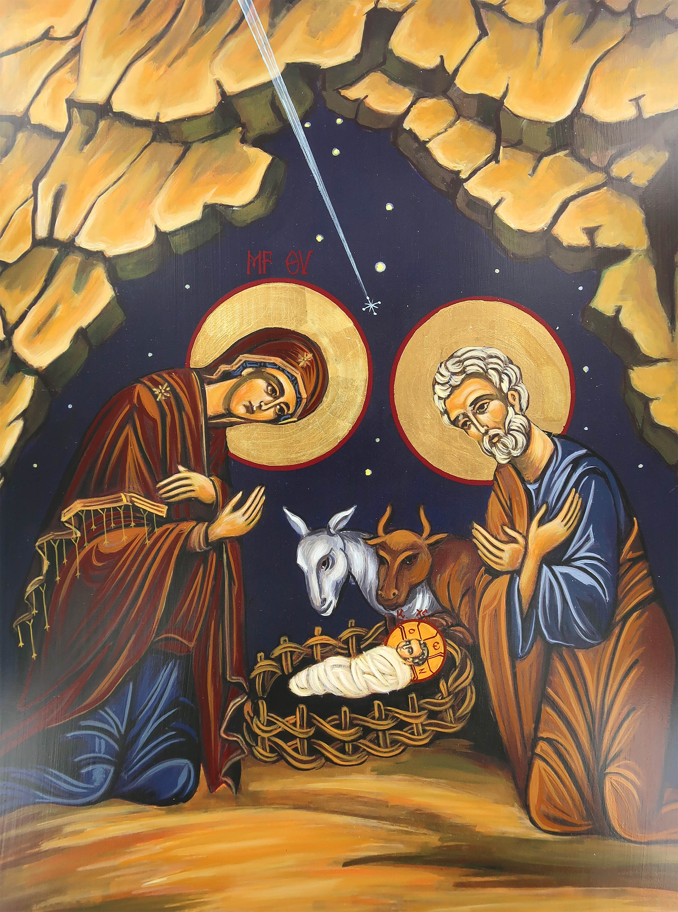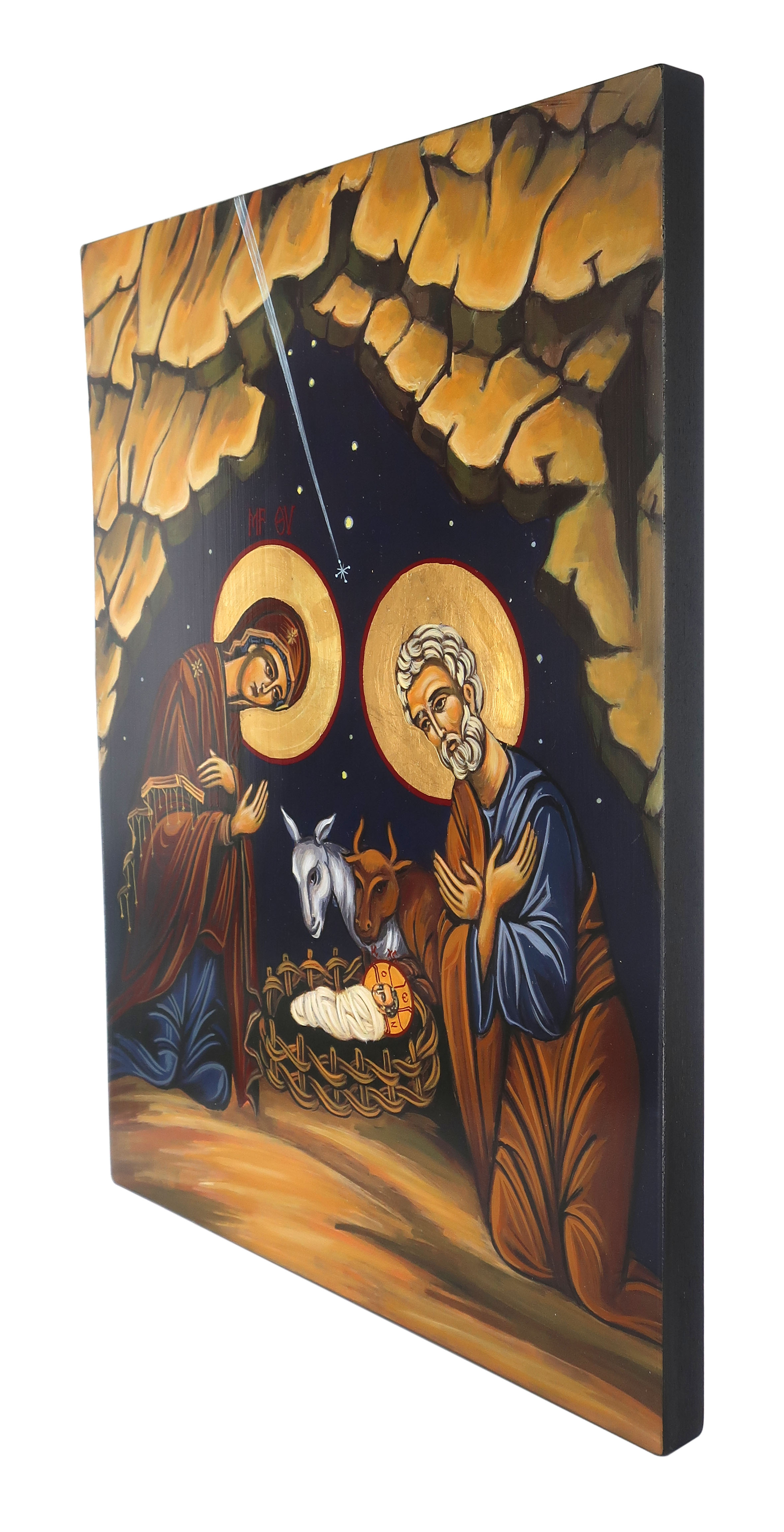 Icona Natività dipinta a mano su legno con fondo oro cm 32x42