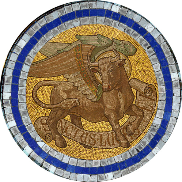 La tavola che rappresenta San Luca, il santo patrono dei medici, si presenta con colori vivaci ed il tipo di lavorazione ricorda il mosaico. Sotto l'immagine del Santo vi è il simbolo con cui è ricordato.