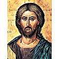 Pantocrator significa "Colui che sostiene in se le cose"; è una raffigurazione tipica dell'arte bizantina. Gesù è raffigurato a mezzo busto, con le dita della mano levate nell'atto di benedire, mentre la sinistra regge il libro chiuso, simbolo della sua legge. Il testo evangelico simboleggia il giudizio divino sul mondo, mentre la mano benedicente indica la misericordia divina incarnata nel Verbo. Un profondo simbolismo è sotteso alla mano benedicente, infatti questo gesto rivela la divino-umanità di Cristo: le dita incrociate formano l'anagramma di Gesù (IC) Cristo (XC). Il volto del Pantocratore esprime un'infinita misericordia verso l'uomo, egli si sacrifica in croce per spingere l'uomo alla salvezza. I colori della veste hanno un'importanza simbolica molto forte: il rosso della tunica espime la signoria di Cristo sul mondo, mentre il manto blu nè ricorda l'umanità. Lo sfondo dell'icona di colore dorato indica la luce increata da Dio. La tavola, di produzione artigianale, è stata realizzata in Italia.
