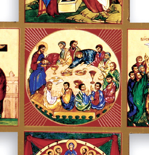 Croce in legno raffigurante la Salvezza. Questa immagine è una stampa su legno.