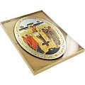 L'immagine è una stampa di carta lucida su legno ovale, con finiture a caldo in oro e in argento.