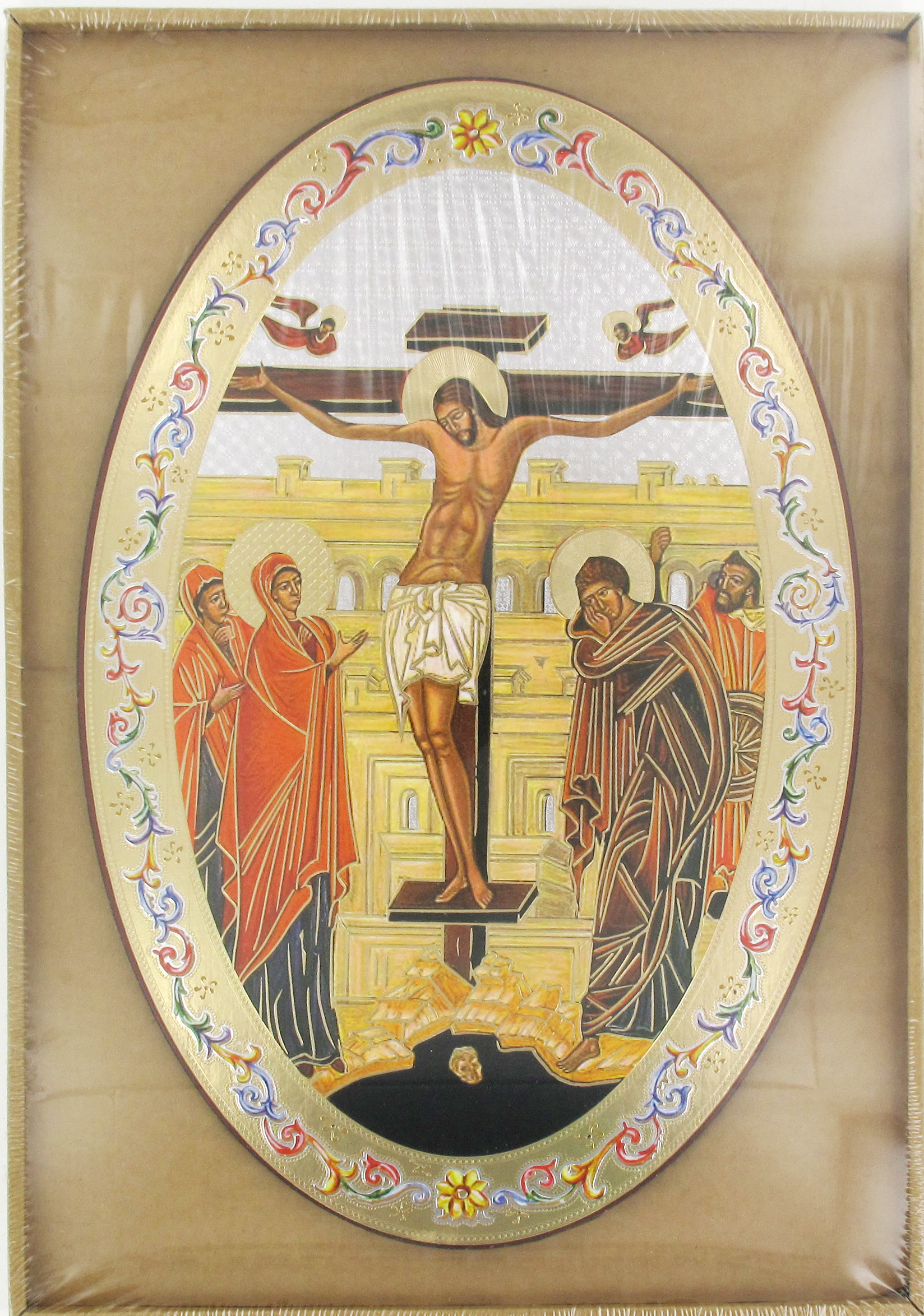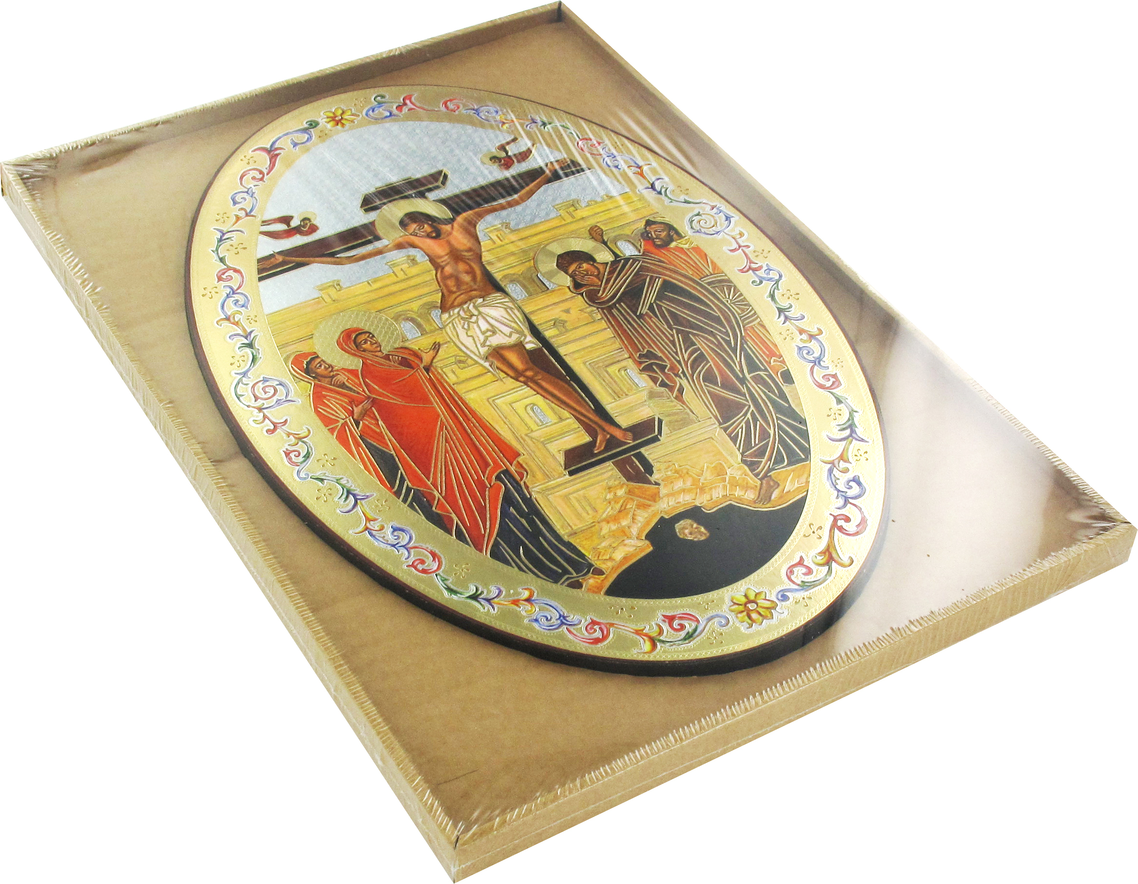 Icona Crocefissione stampa su legno ovale - 20 x 30 cm
