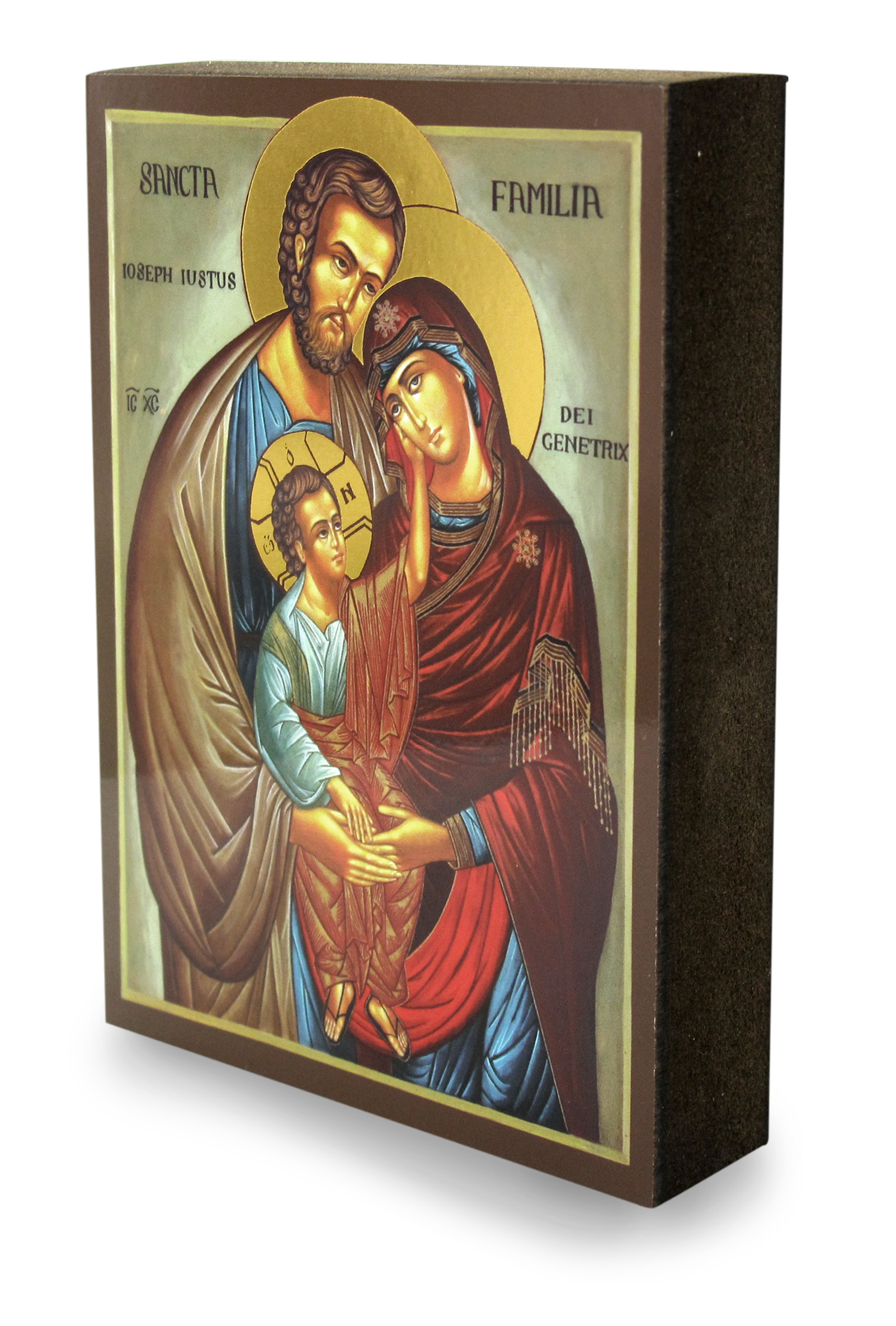 Quadro icona Sacra Famiglia stampa su legno - 26 x 20 cm