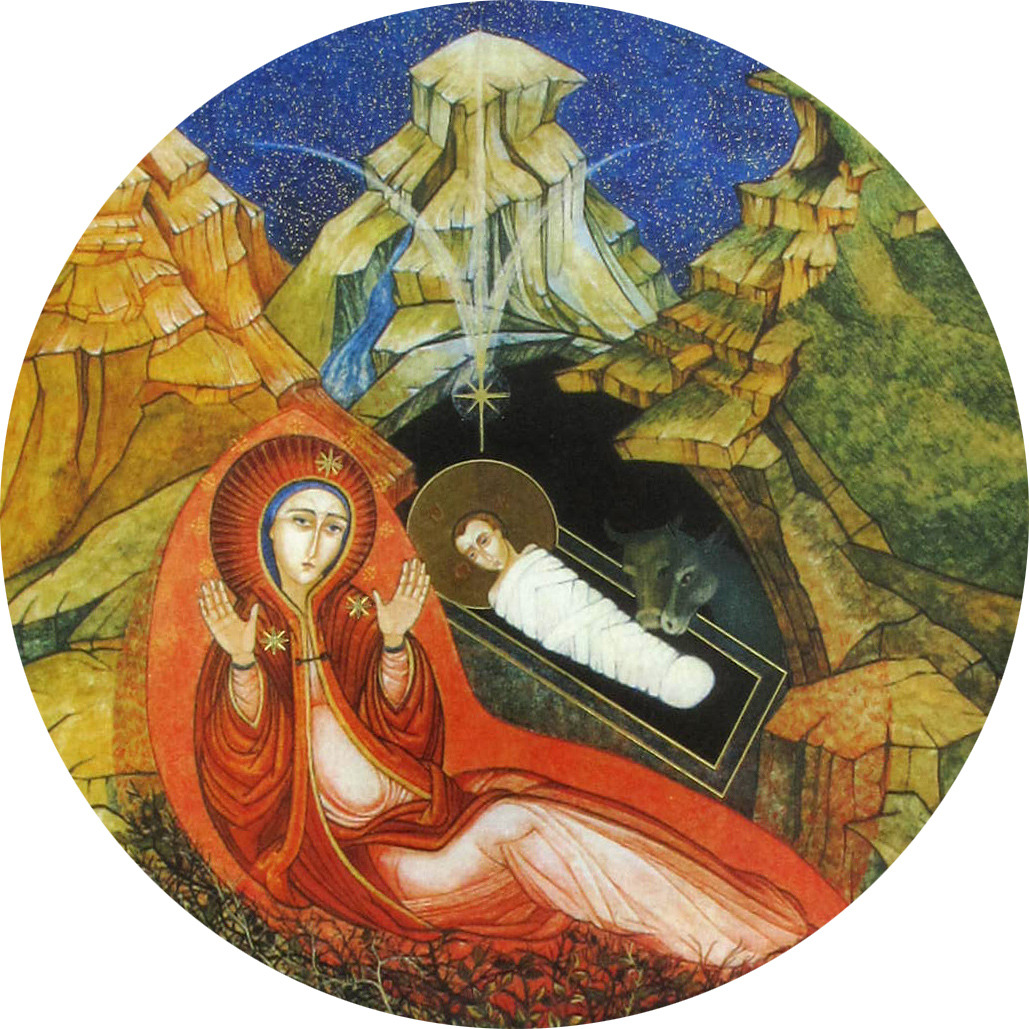 Tavola in legno a forma di cuspide raffigurante la Natività.
