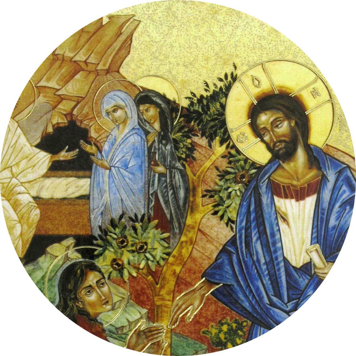 Tavola in legno a forma di cuspide raffigurante la Resurrezione di Gesù.