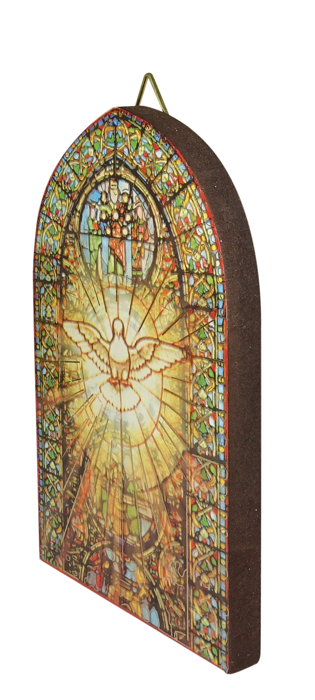 Quadro Spirito Santo stampa tipo vetrata su legno - 6,4 x 10,5 cm
