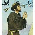 Tavola in legno raffigurante San Francesco. L'immagine è una stampa su legno.
