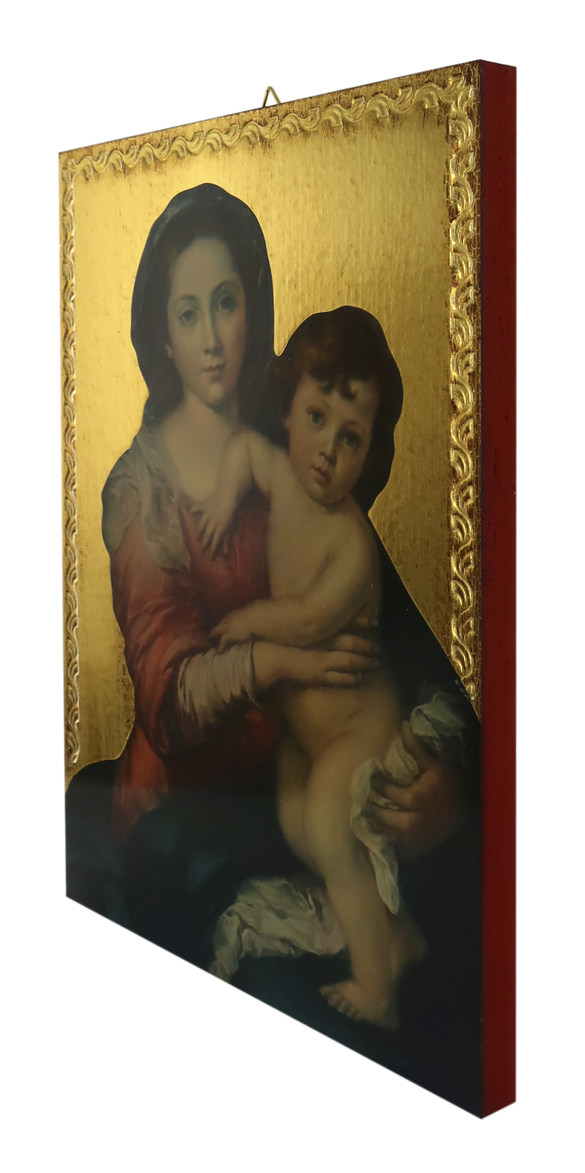 Tavola Madonna del Murillo stampa su legno - 24 x 17 cm
