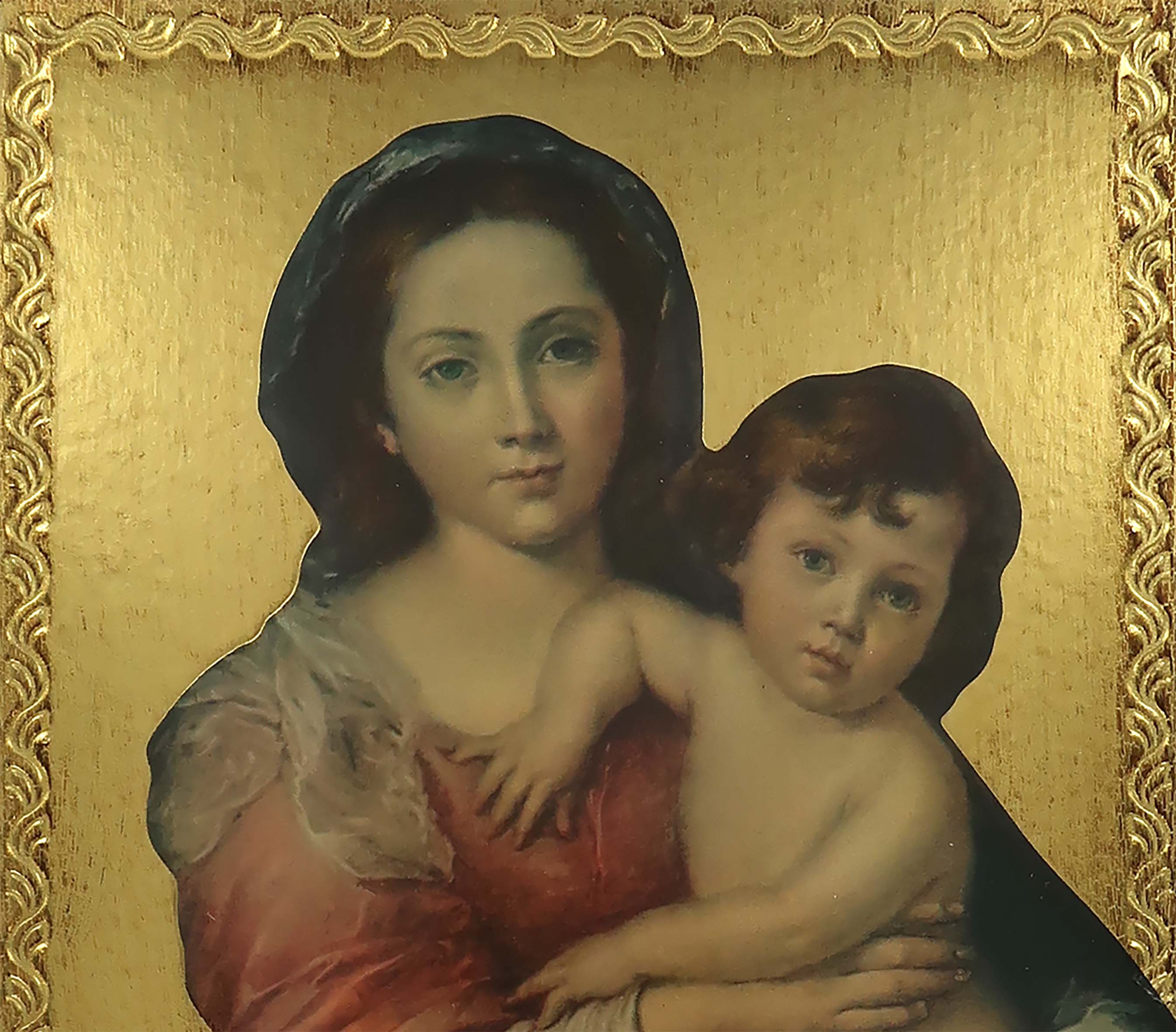Questa tavola in stile fiorentino ci presenta la Madonna del pittore Murillo, che si distingue per la particolare delicatezza dei volti, conosciuta anche come "Madonna del Rosario con Bambino".