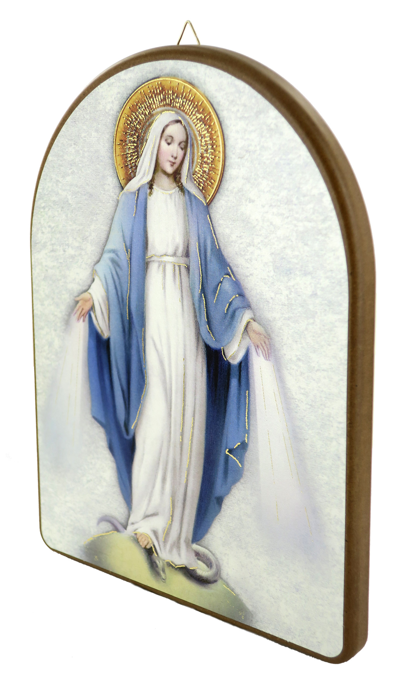 Tavola Madonna Miracolosa stampa su legno ad arco - 15 x 20 cm