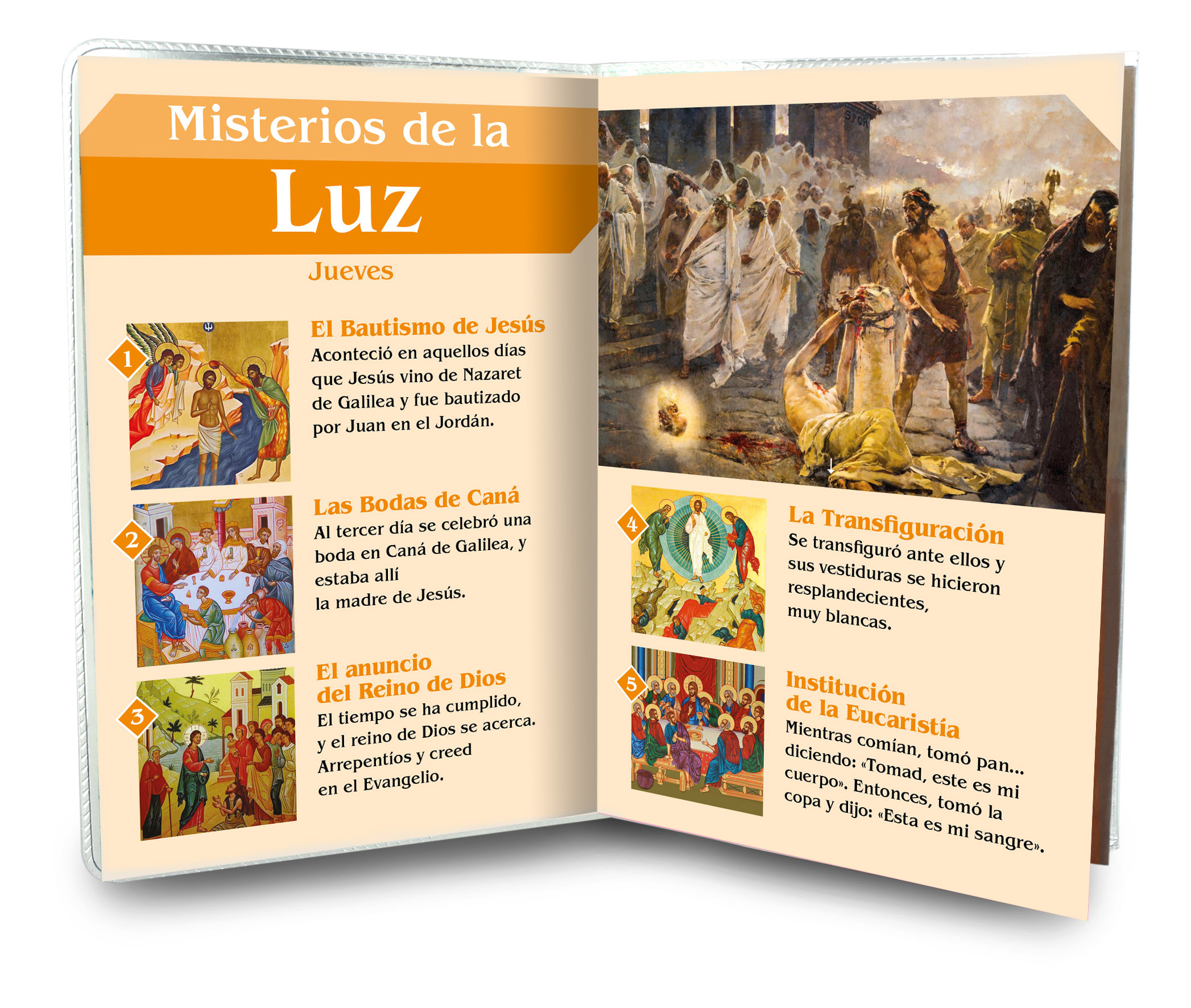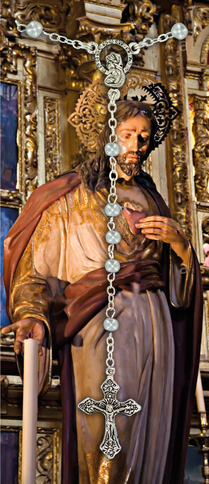 Il libretto, composto da 16 pagine, si presenta con una copertina in plastica trasparente e nell'interno vi è un piccolo rosario con i grani tipo perlina del diamero di mm 4.