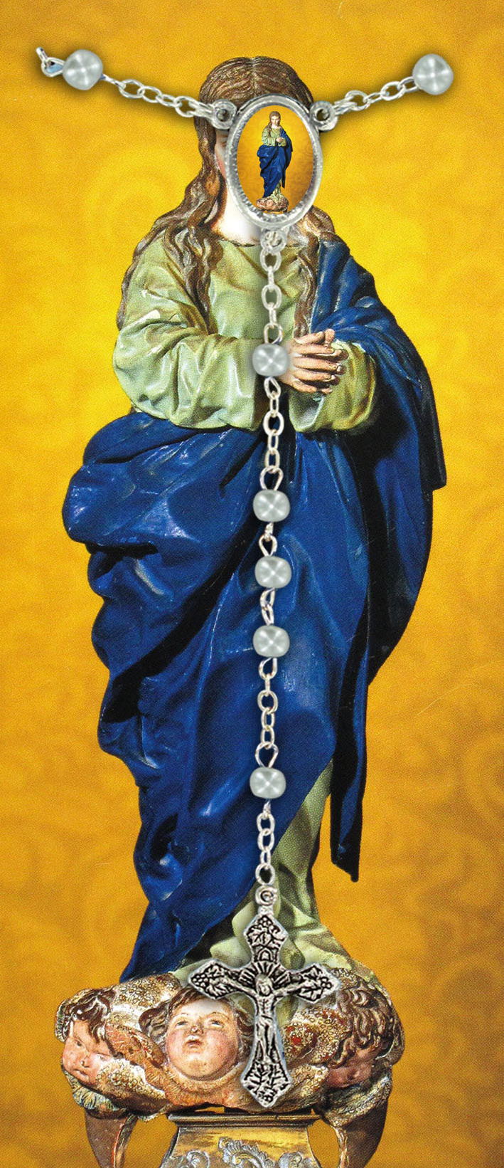 Il libretto, composto da 16 pagine, si presenta con una copertina in plastica trasparente e nell'interno vi è un piccolo rosario con i grani tipo perlina del diamero di mm 4.