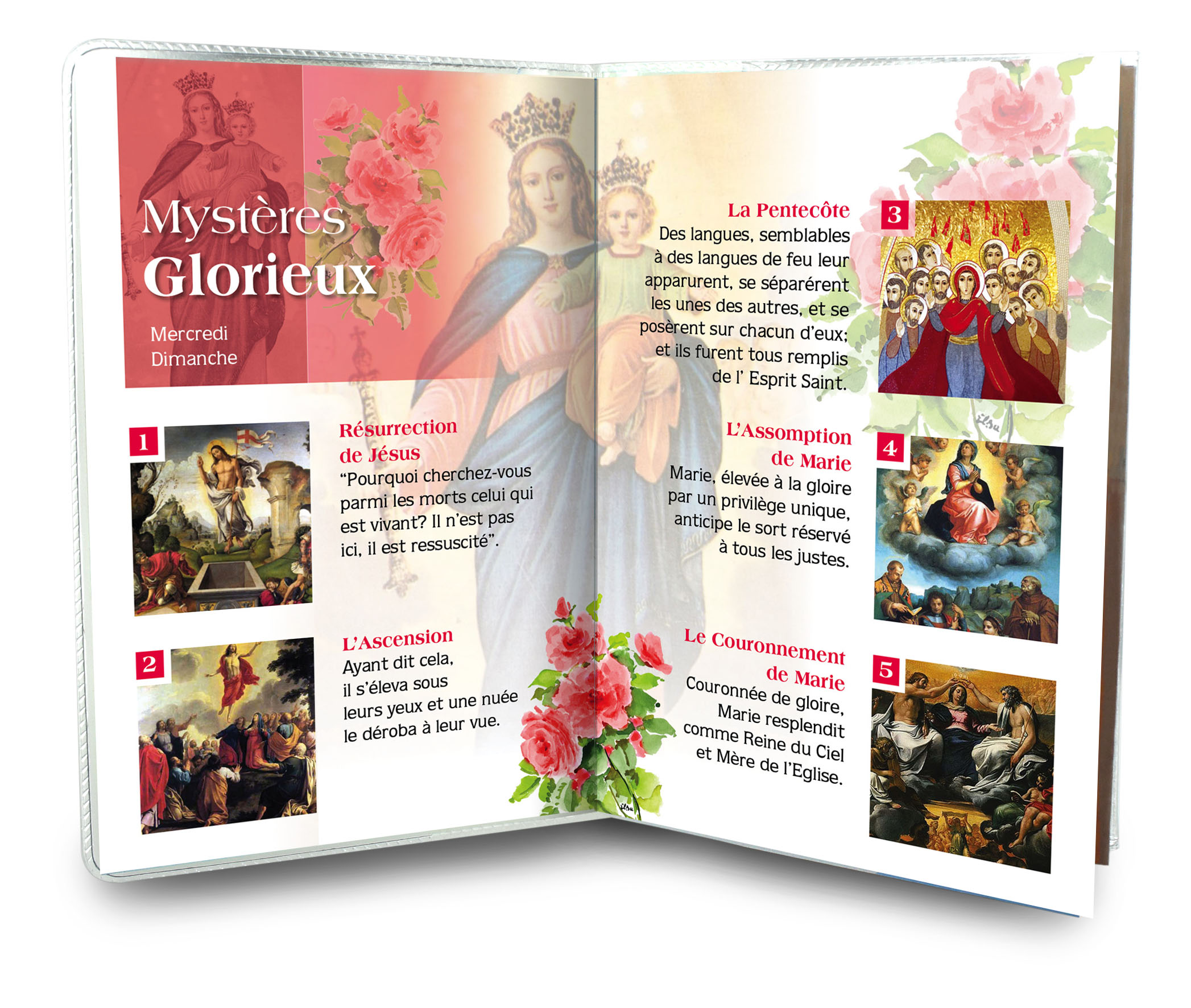 Il libretto, composto da 16 pagine, si presenta con una copertina in plastica trasparente e nell'interno vi è un piccolo rosario con i grani tipo perlina del diamero di mm 4.