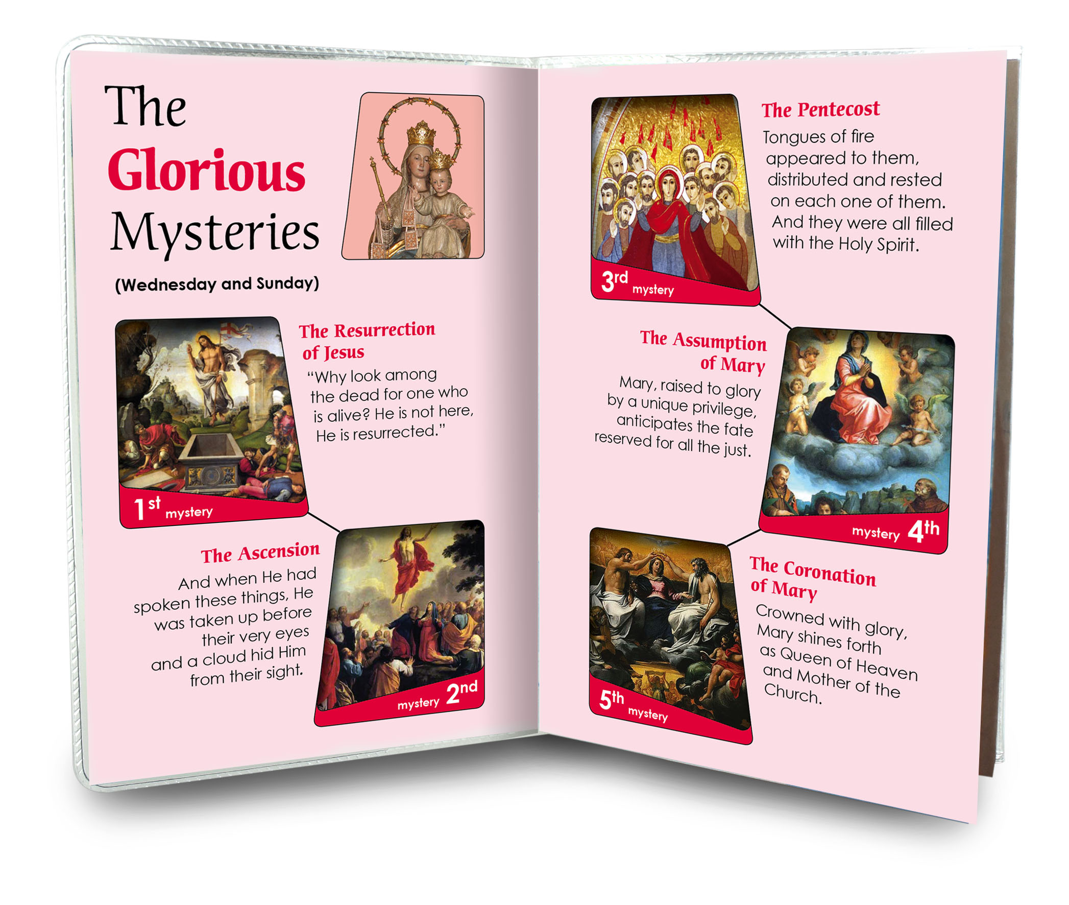 Il libretto, composto da 16 pagine, si presenta con una copertina in plastica trasparente e nell'interno vi è un piccolo rosario con i grani tipo perlina del diamero di mm 4.