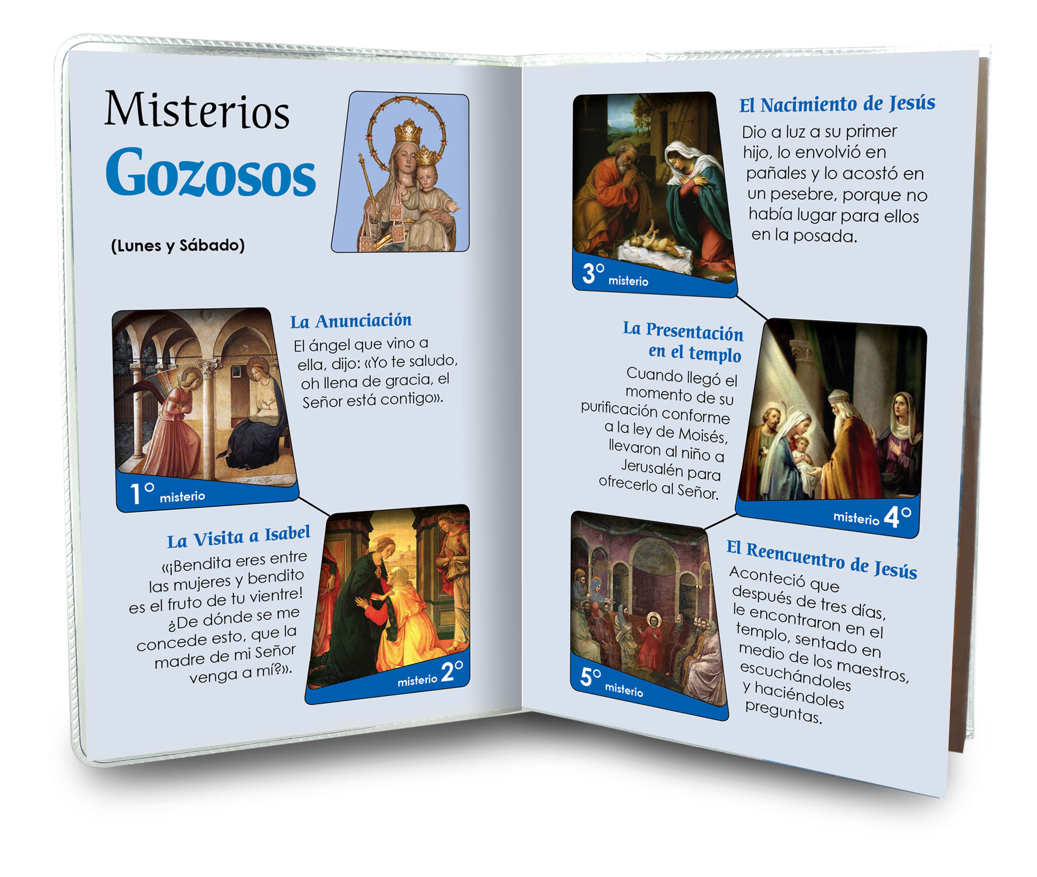 Il libretto, composto da 16 pagine, si presenta con una copertina in plastica trasparente e nell'interno vi è un piccolo rosario con i grani tipo perlina del diamero di mm 4.