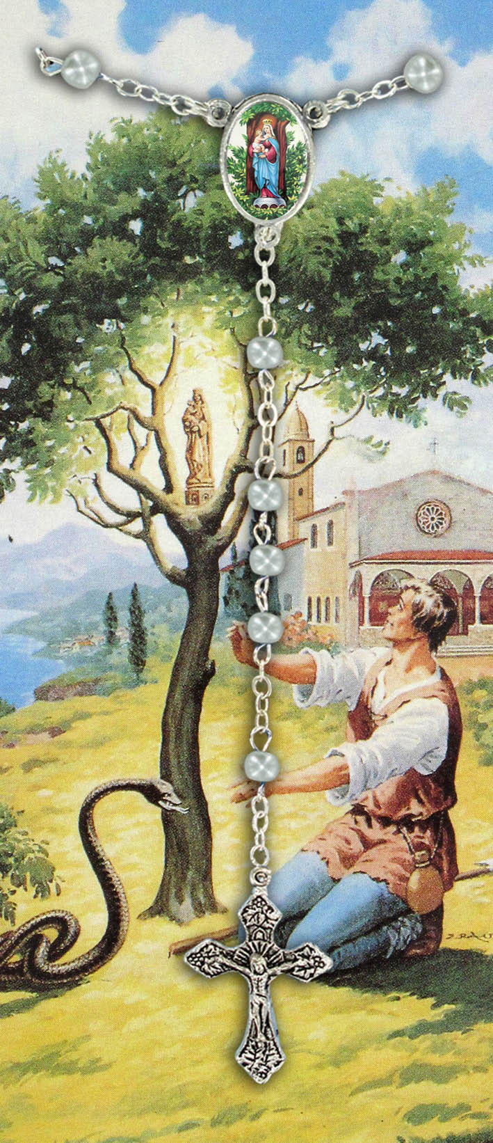 Il libretto, composto da 16 pagine, si presenta con una copertina in plastica trasparente e nell'interno vi è un piccolo rosario con i grani tipo perlina del diamero di mm 4.
