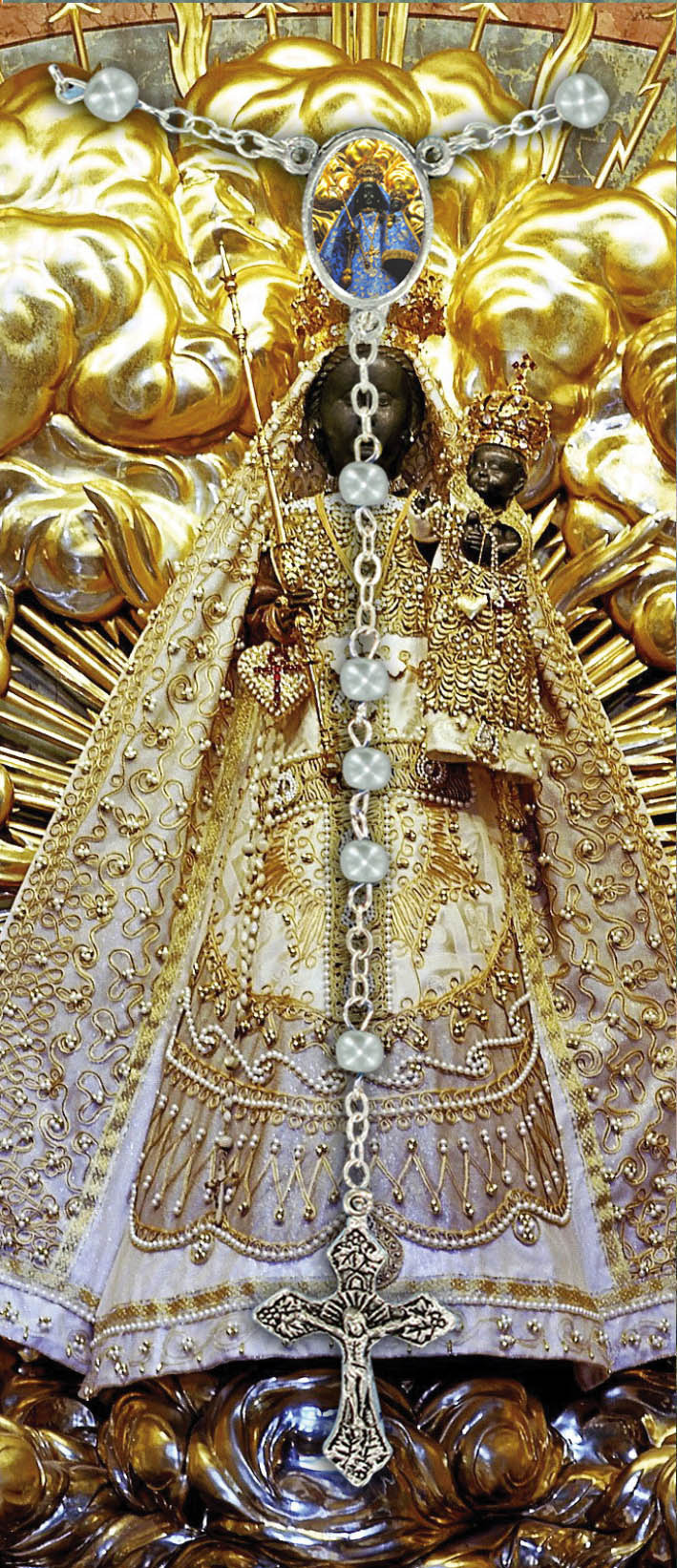 Il libretto, composto da 16 pagine, si presenta con una copertina in plastica trasparente e nell'interno vi è un piccolo rosario con i grani tipo perlina del diamero di mm 4.