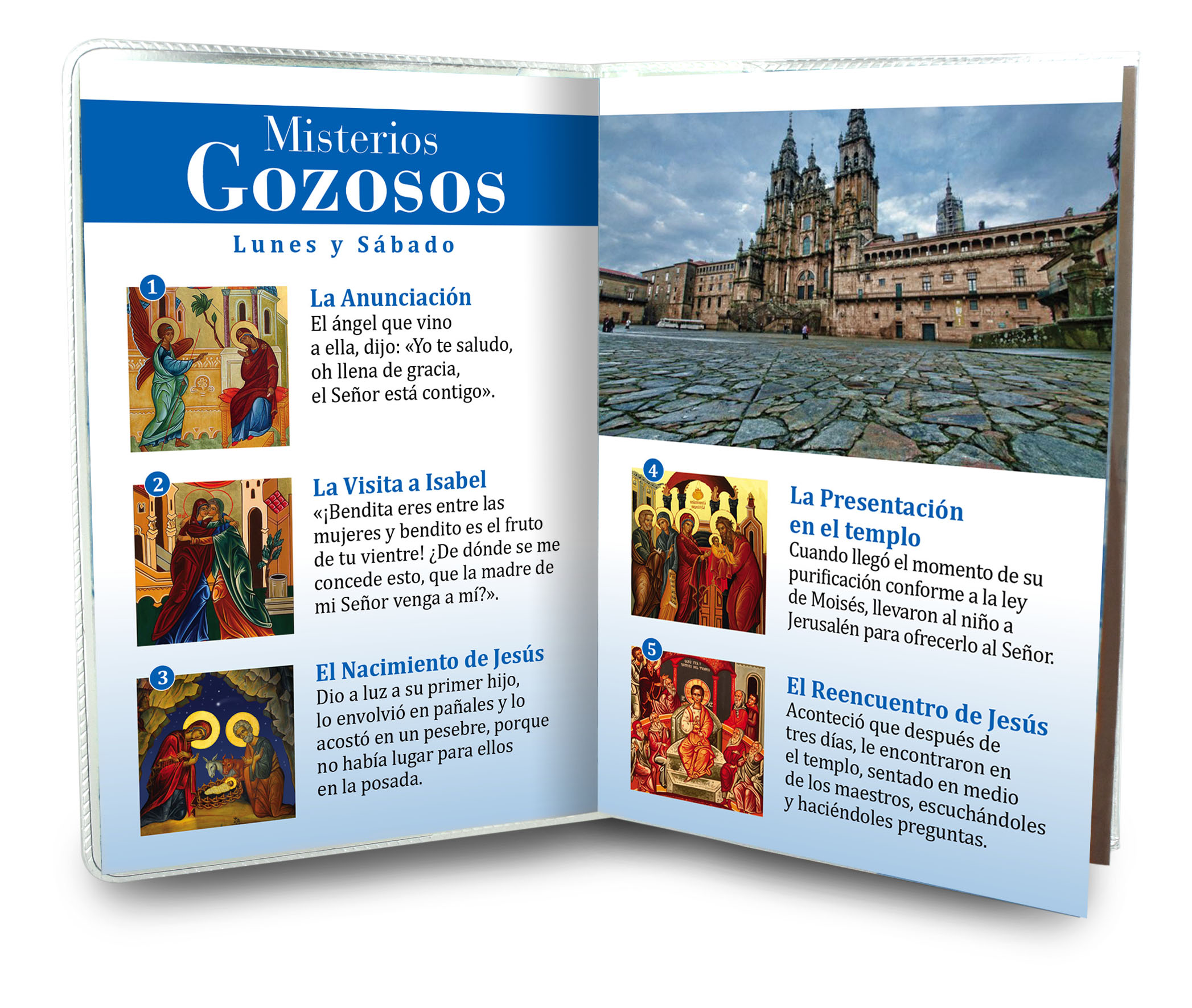 Il libretto, composto da 16 pagine, si presenta con una copertina in plastica trasparente e nell'interno vi è un piccolo rosario con i grani tipo perlina del diamero di mm 4.