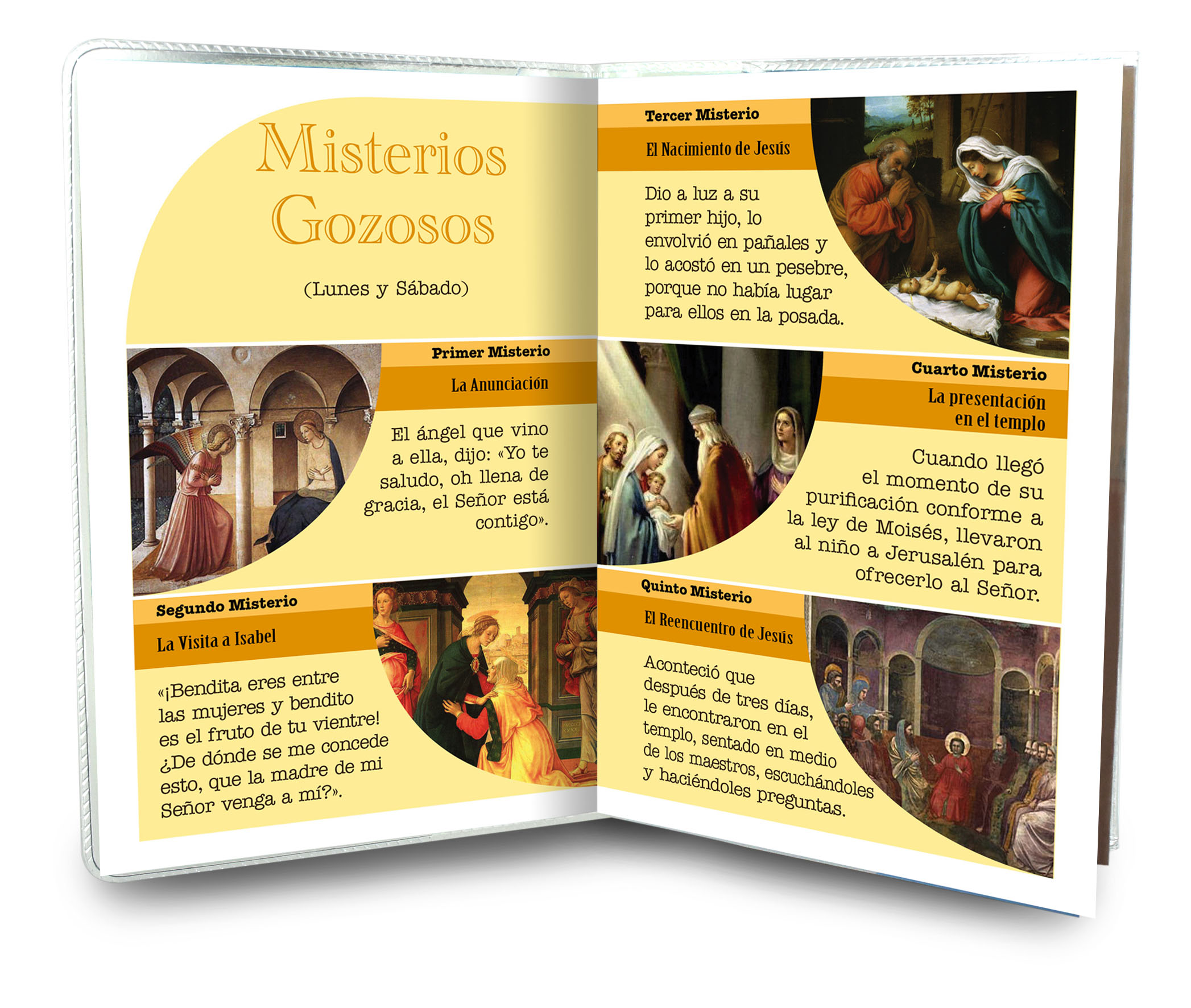 Il libretto, composto da 16 pagine, si presenta con una copertina in plastica trasparente e nell'interno vi è un piccolo rosario con i grani tipo perlina del diamero di mm 4.