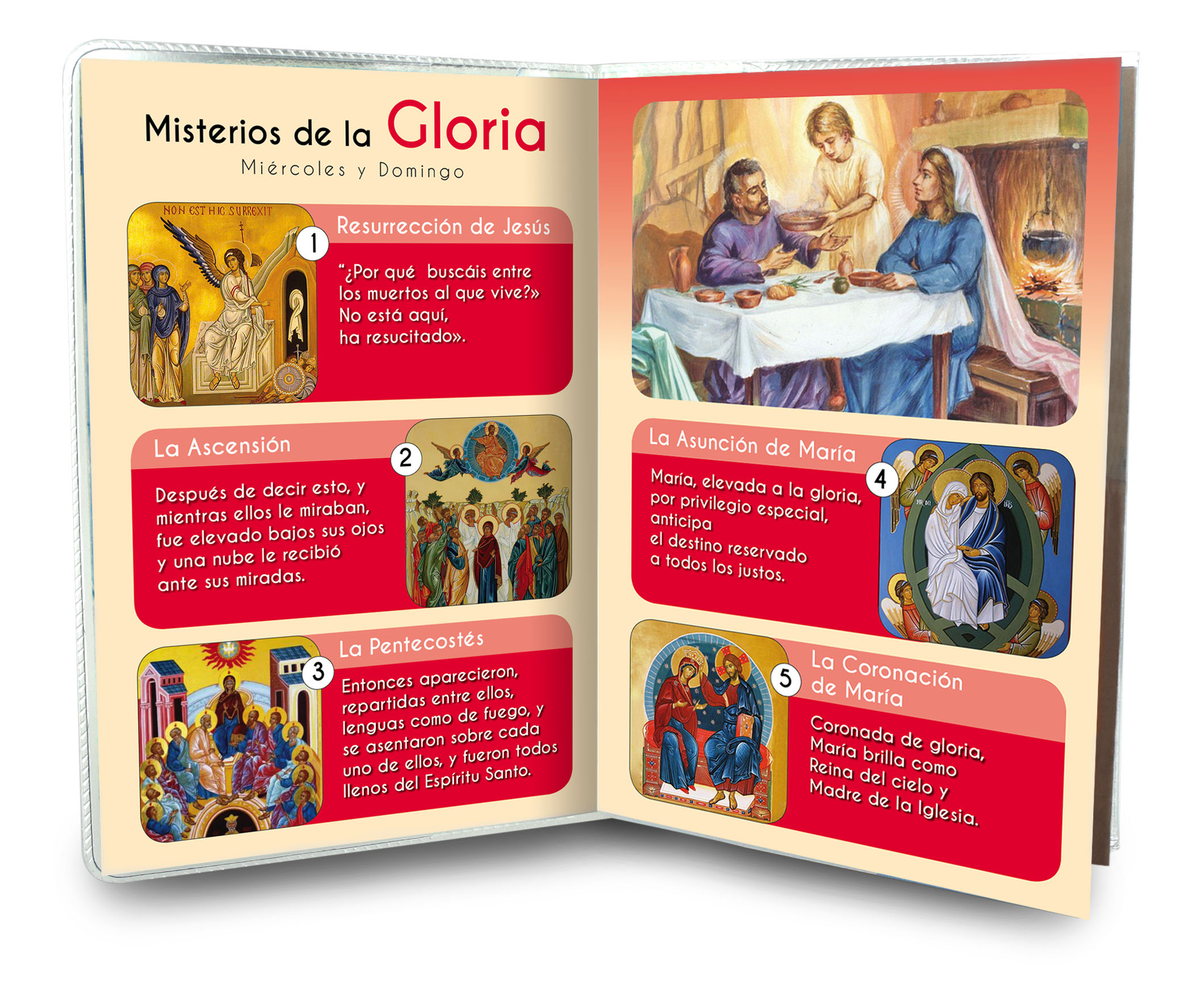 Il libretto, composto da 16 pagine, si presenta con una copertina in plastica trasparente e nell'interno vi è un piccolo rosario con i grani tipo perlina del diamero di mm 4.
