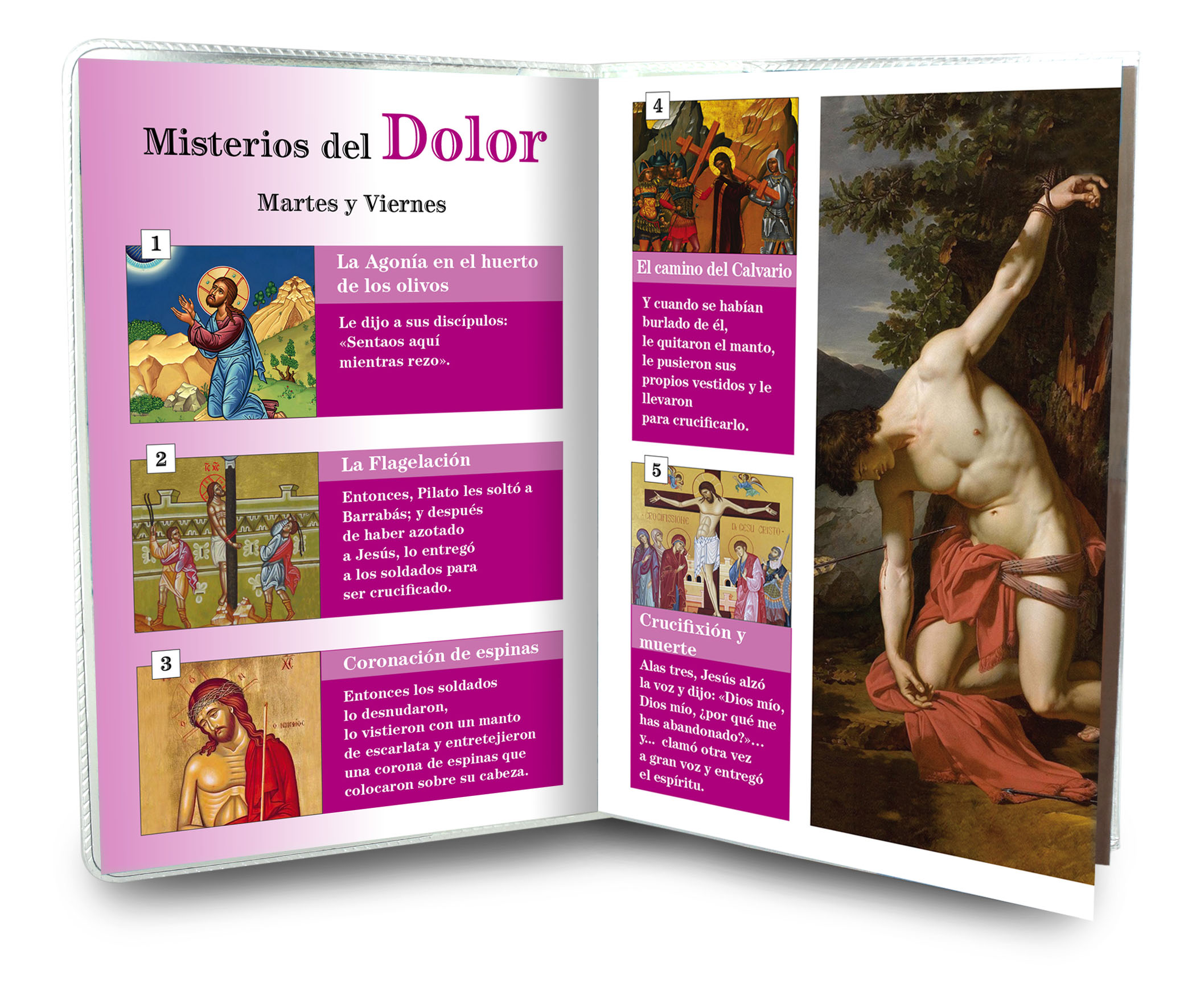 Il libretto, composto da 16 pagine, si presenta con una copertina in plastica trasparente e nell'interno vi è un piccolo rosario con i grani tipo perlina del diamero di mm 4.