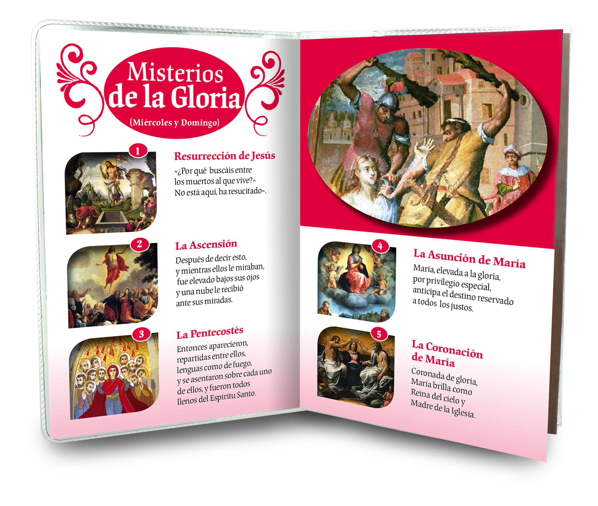 Il libretto, composto da 16 pagine, si presenta con una copertina in plastica trasparente e nell'interno vi è un piccolo rosario con i grani tipo perlina del diamero di mm 4.