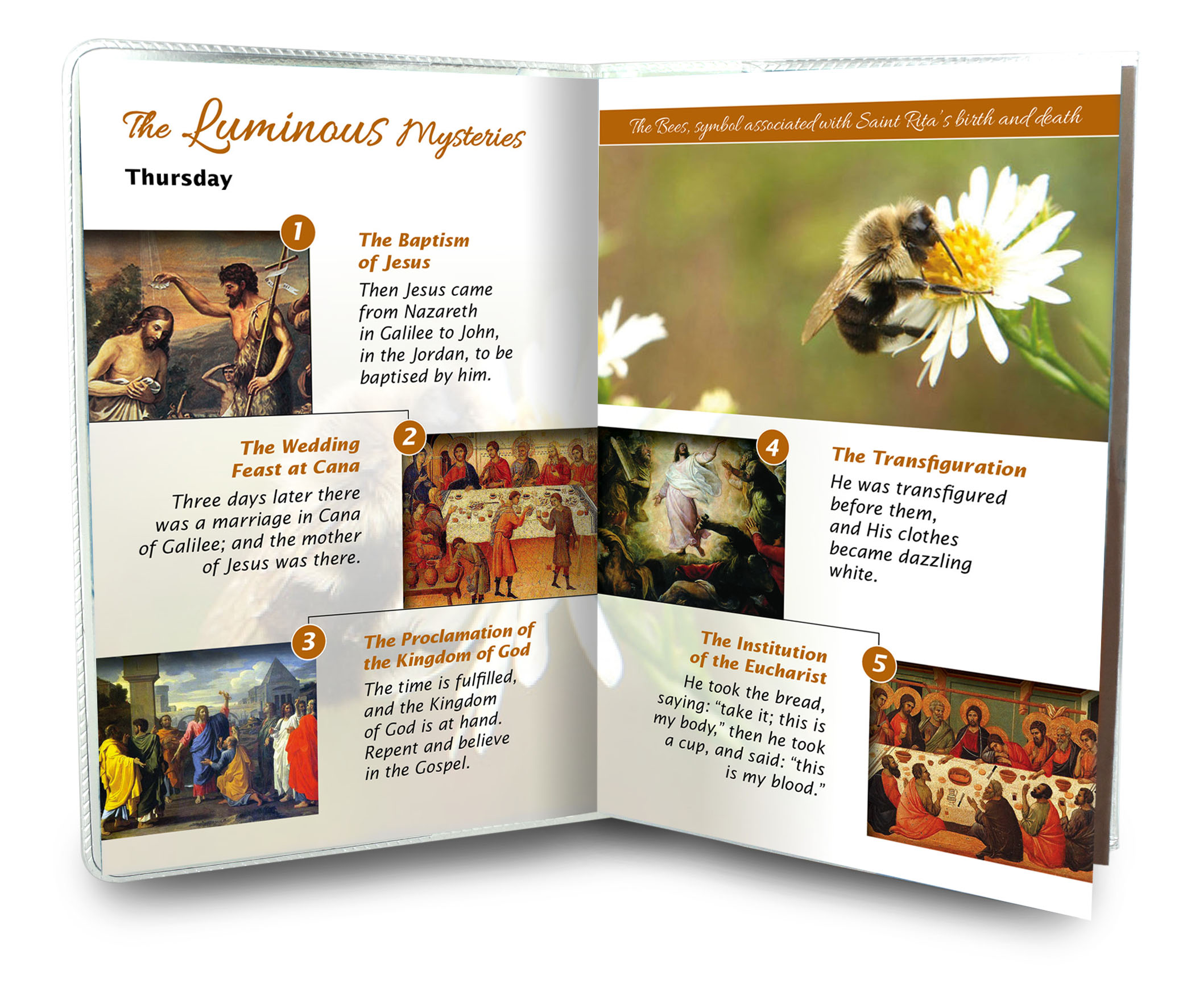 Nell'interno troviamo la spiegazione di come recitare il Santo Rosario ed una preghiera dedicata a Santa Rita da Cascia.