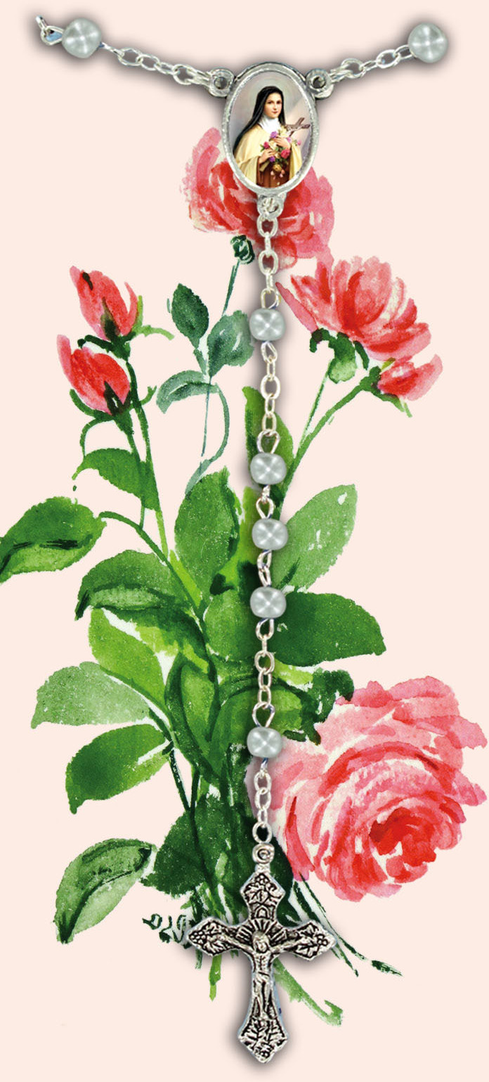 Nell'interno troviamo la spiegazione di come recitare il Santo Rosario e una preghiera scritta da Santa Teresa di Lisieux.