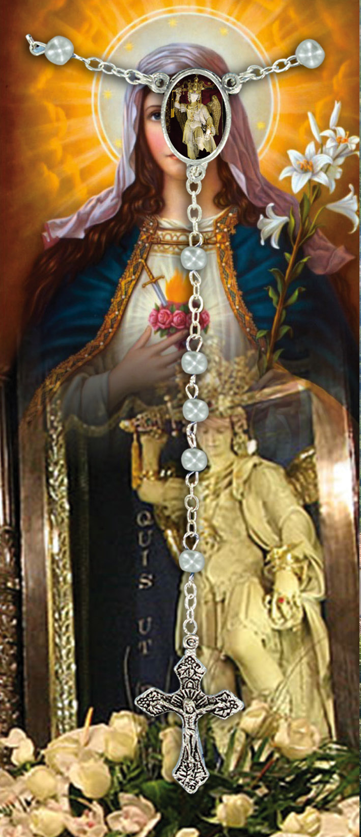 Nell'interno troviamo la spiegazione di come recitare il Santo Rosario e l'atto di affidamento all'Arcangelo Michele.