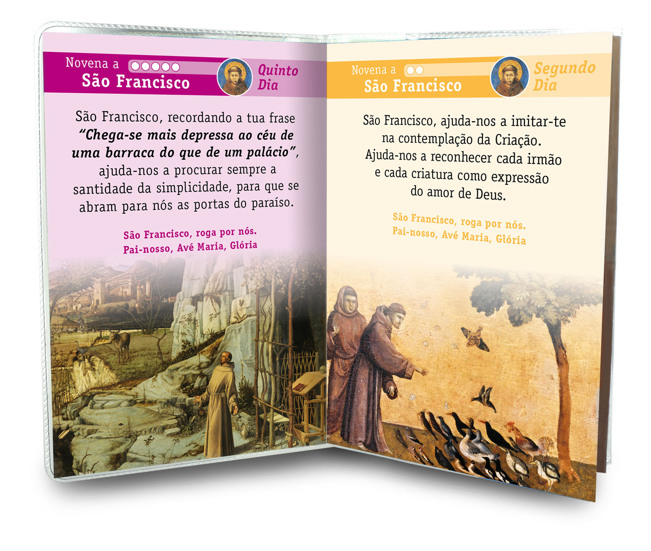 Nell'interno vi sono le invocazioni della novena dedicata a San Francesco e un inno allo Spirito Santo.