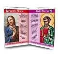 Il libretto, composto da 16 pagine, si presenta con una copertina in plastica trasparente e nell'interno vi è un piccolo rosario con i grani tipo perlina del diamero di mm 4.